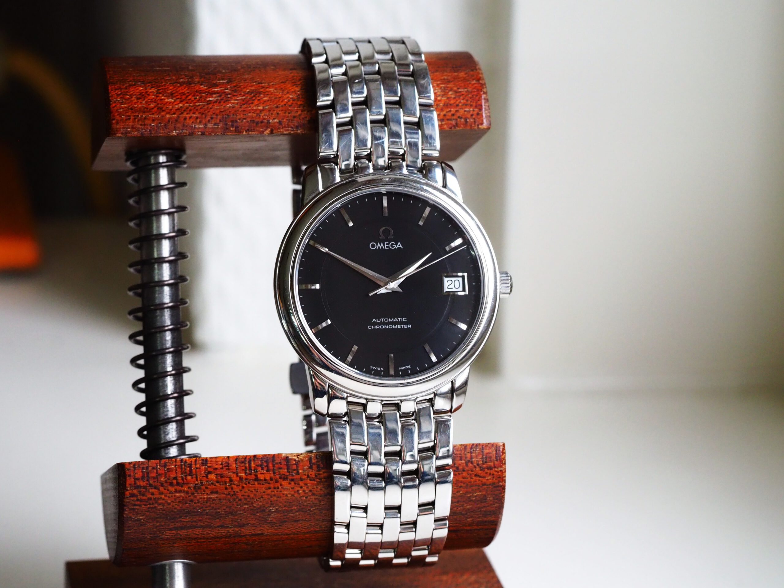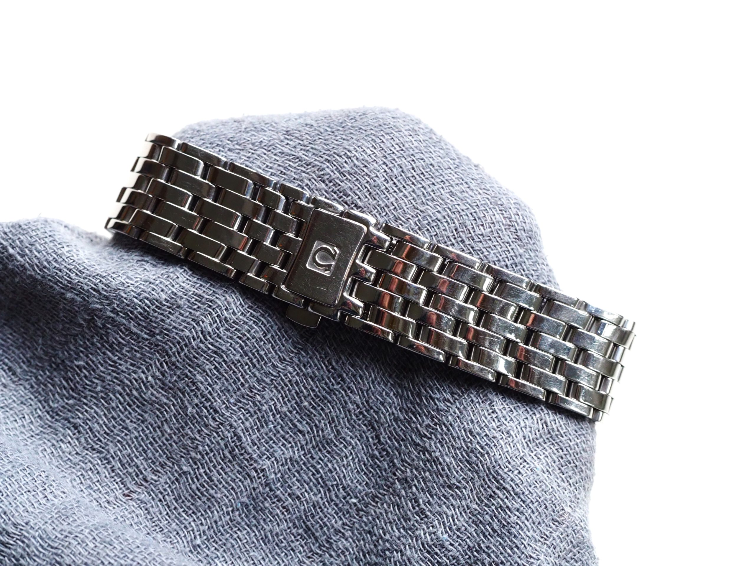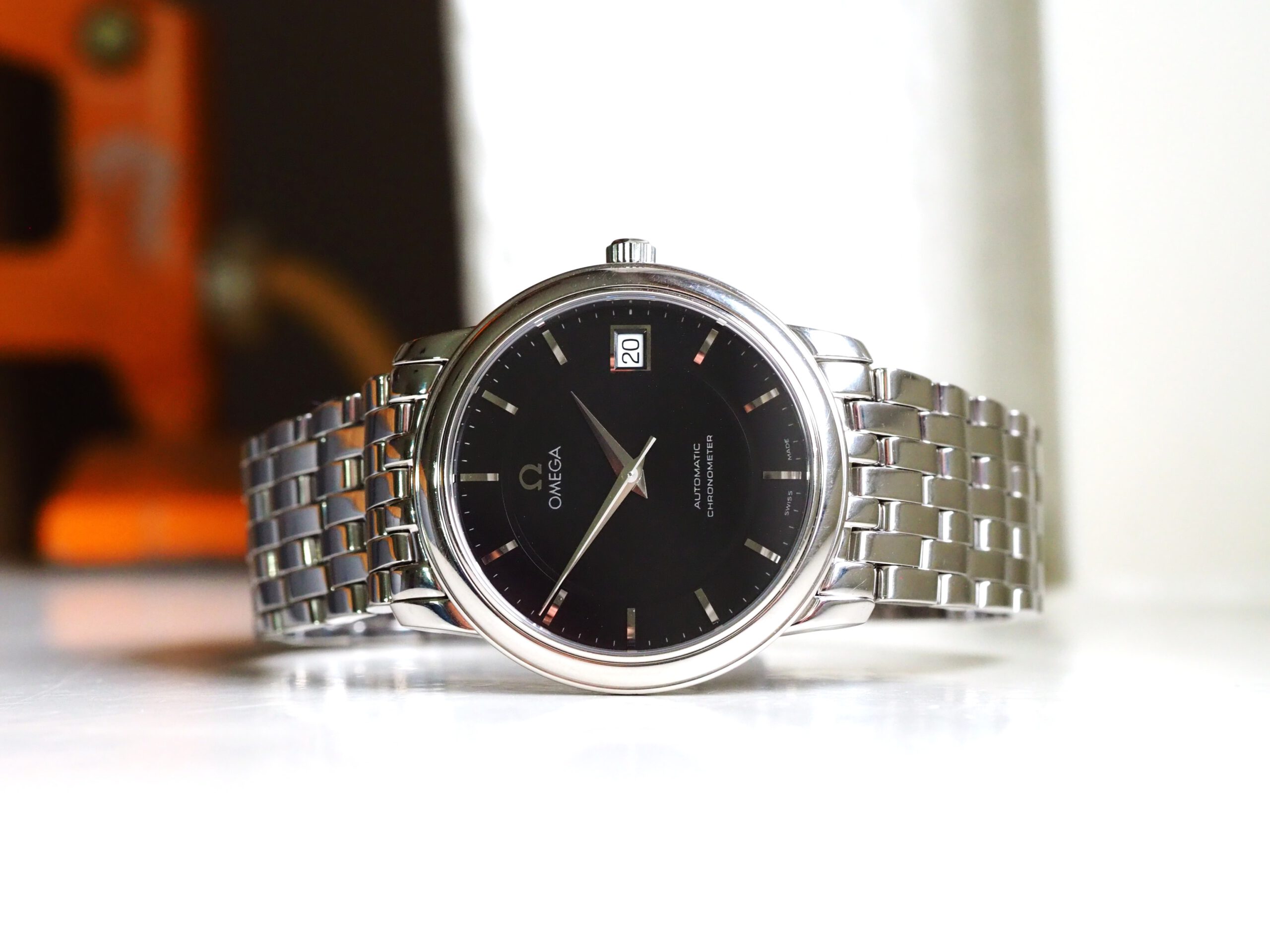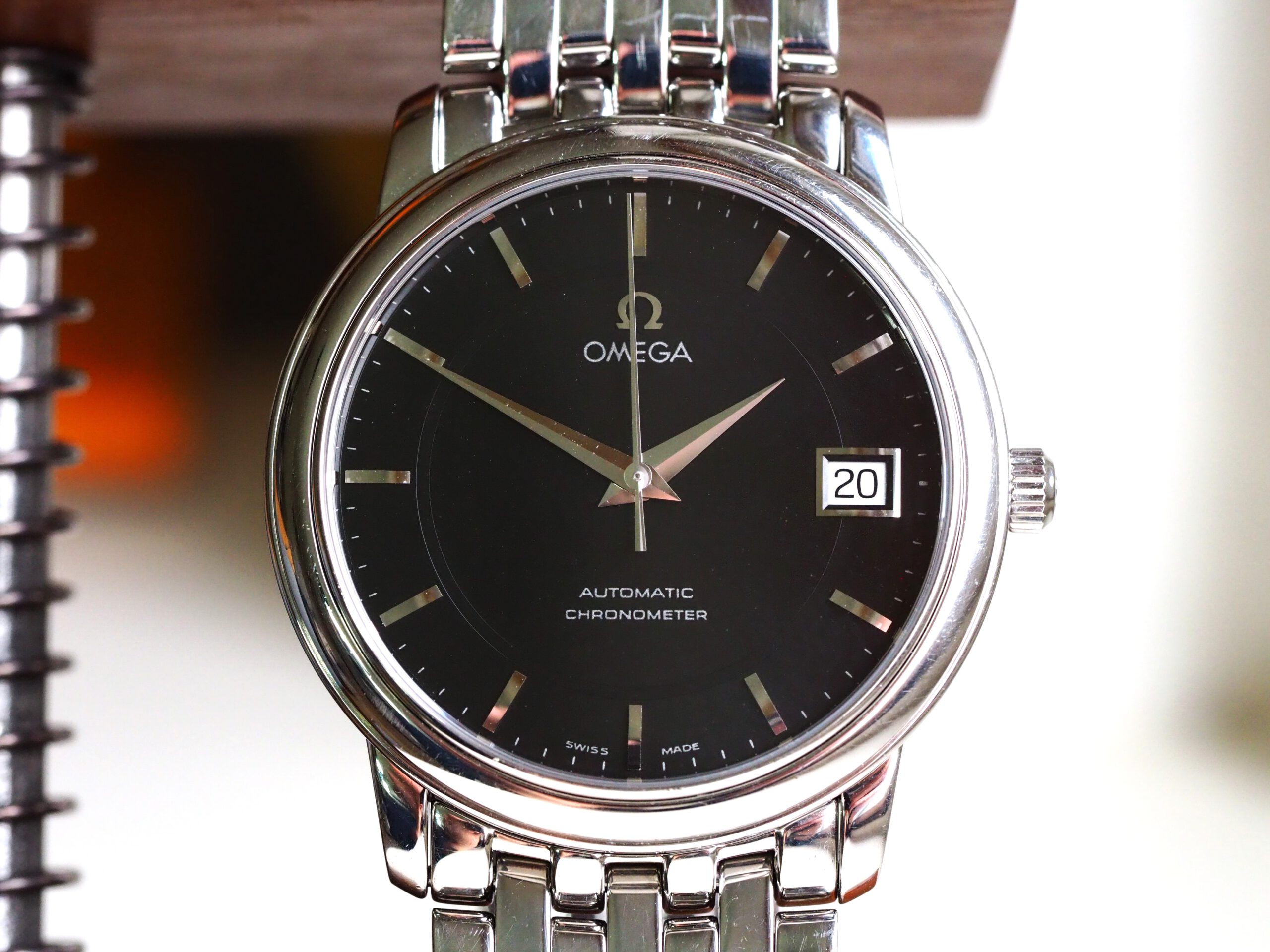 Referentie 4500.51.00 Omega De Ville Prestige Chronometer, serienummer 49689664 geproduceerd rond 2000. Prachtige Omega van roestvrij staal in goede originele staat met chronometer gecertificeerd uurwerk. Horloges uit de De Ville lijn staan voor elegantie en prestige en dit horloge is daarop geen uitzondering. De band is een kunstwerk en draagt zeer comfortabel, geschikt voor een polsomtrek tot +/- 18,5 cm in de huidige lengte. In de kast vinden we een automatisch Omega 1120 uurwerk welke net volledig is geserviced (november 2025) en zeer goed functioneert. Het horloge en de band vertonen lichte gebruikssporen, niets dat niet met een lichte polijstbeurt verholpen kon worden. Ik heb alleen een uurwerkservice uitgevoerd, polijsten is niet mijn specialiteit. Kastdiameter 34,7mm zonder kroo