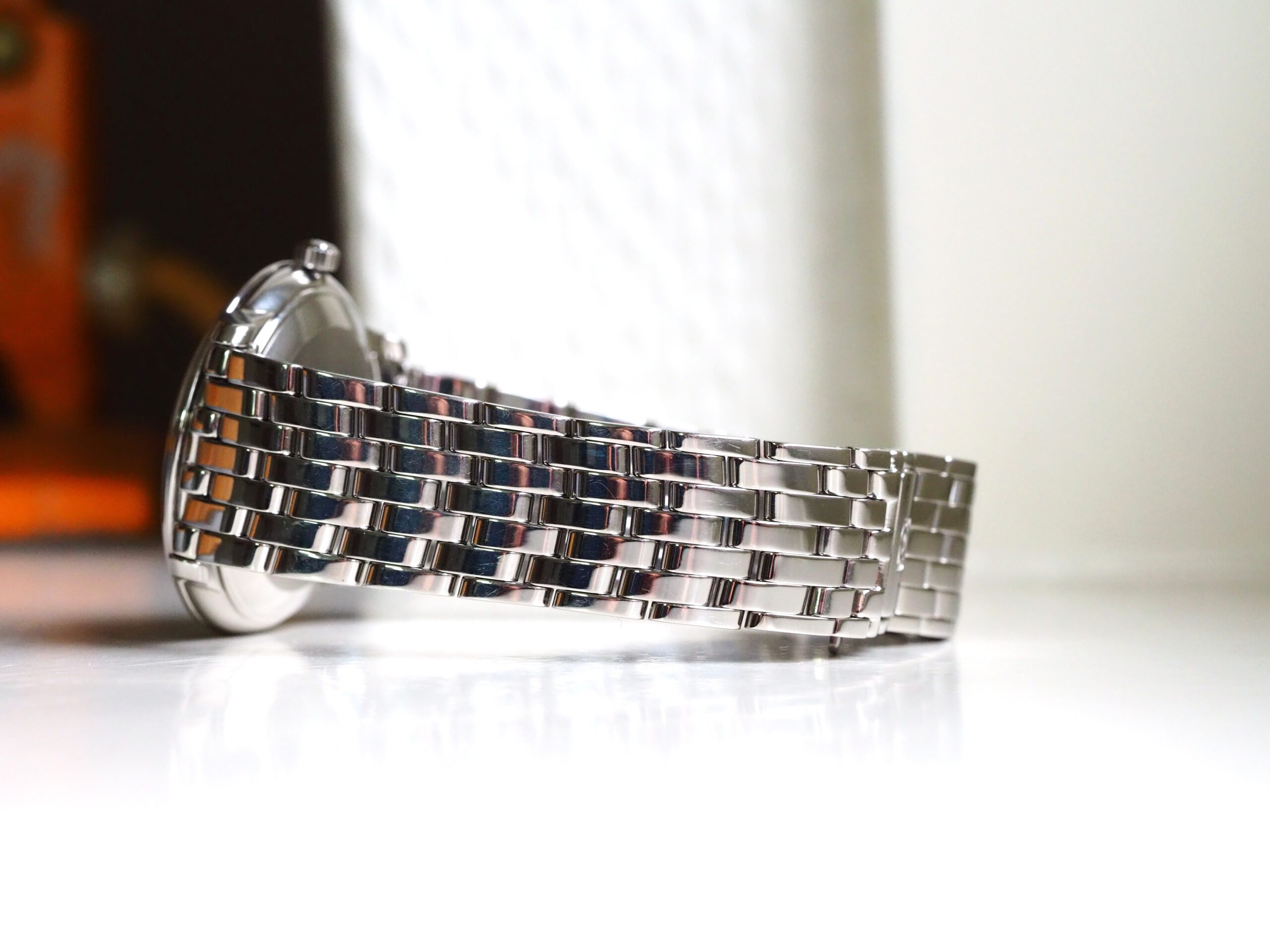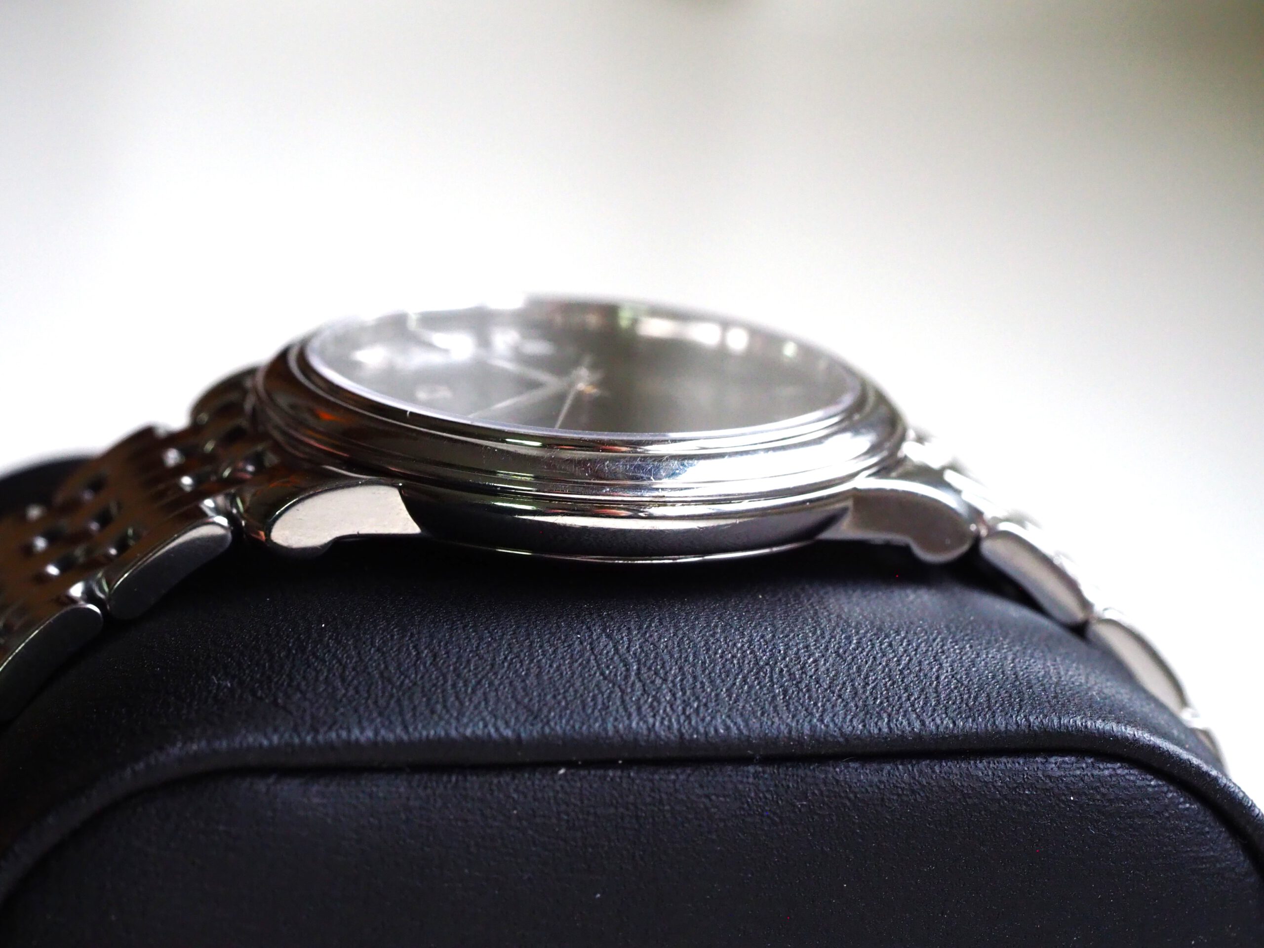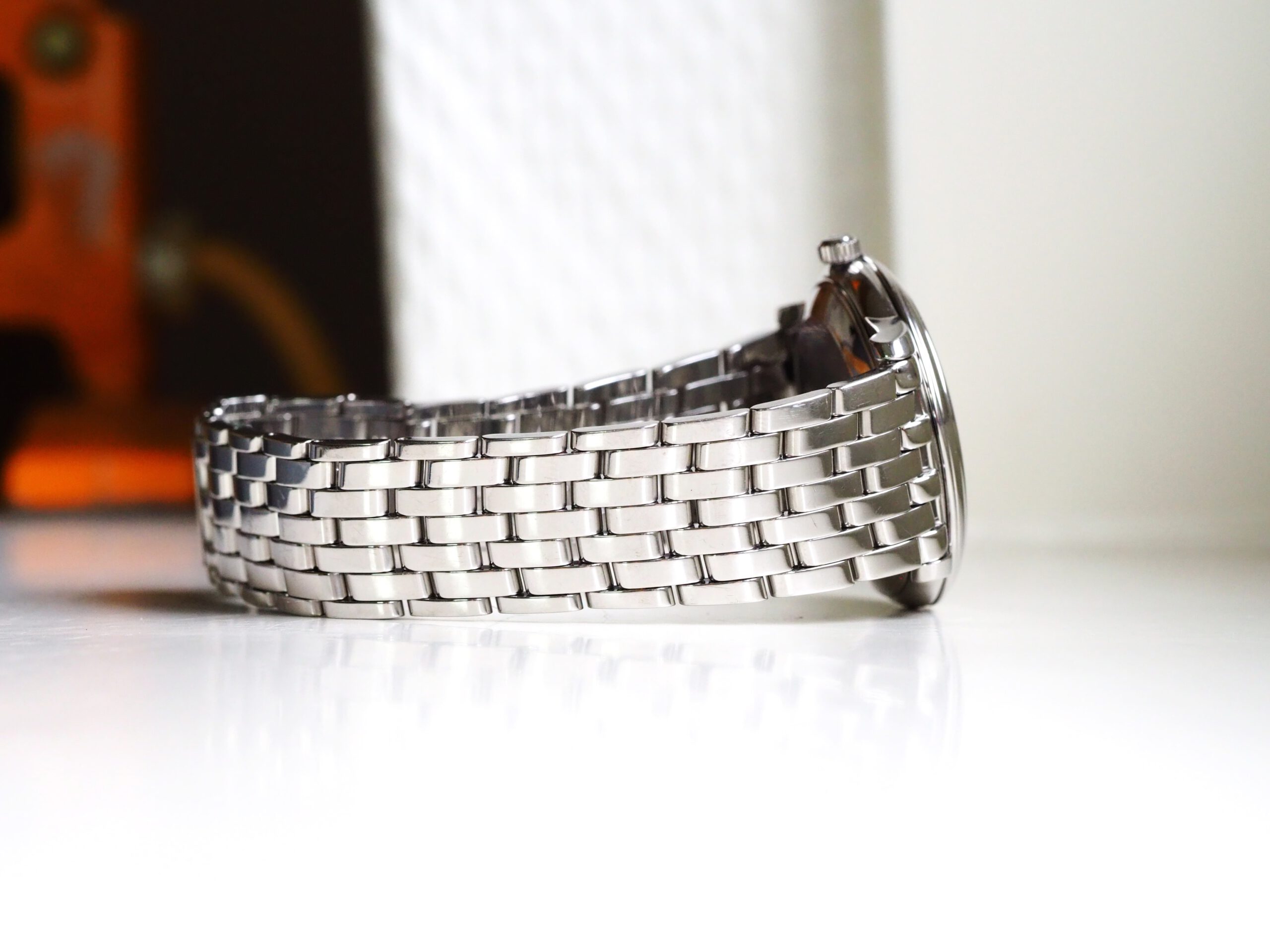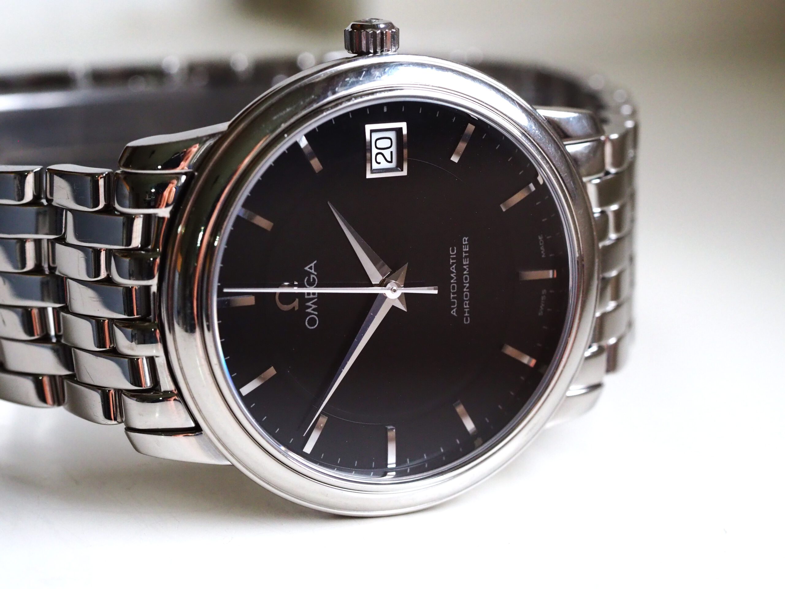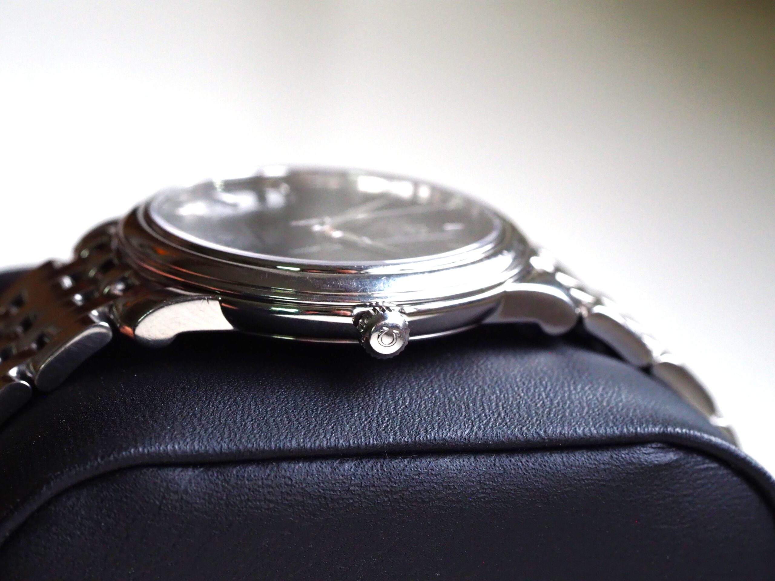 Referentie 4500.51.00 Omega De Ville Prestige Chronometer, serienummer 49689664 geproduceerd rond 2000. Prachtige Omega van roestvrij staal in goede originele staat met chronometer gecertificeerd uurwerk. Horloges uit de De Ville lijn staan voor elegantie en prestige en dit horloge is daarop geen uitzondering. De band is een kunstwerk en draagt zeer comfortabel, geschikt voor een polsomtrek tot +/- 18,5 cm in de huidige lengte. In de kast vinden we een automatisch Omega 1120 uurwerk welke net volledig is geserviced (november 2025) en zeer goed functioneert. Het horloge en de band vertonen lichte gebruikssporen, niets dat niet met een lichte polijstbeurt verholpen kon worden. Ik heb alleen een uurwerkservice uitgevoerd, polijsten is niet mijn specialiteit. Kastdiameter 34,7mm zonder kroo