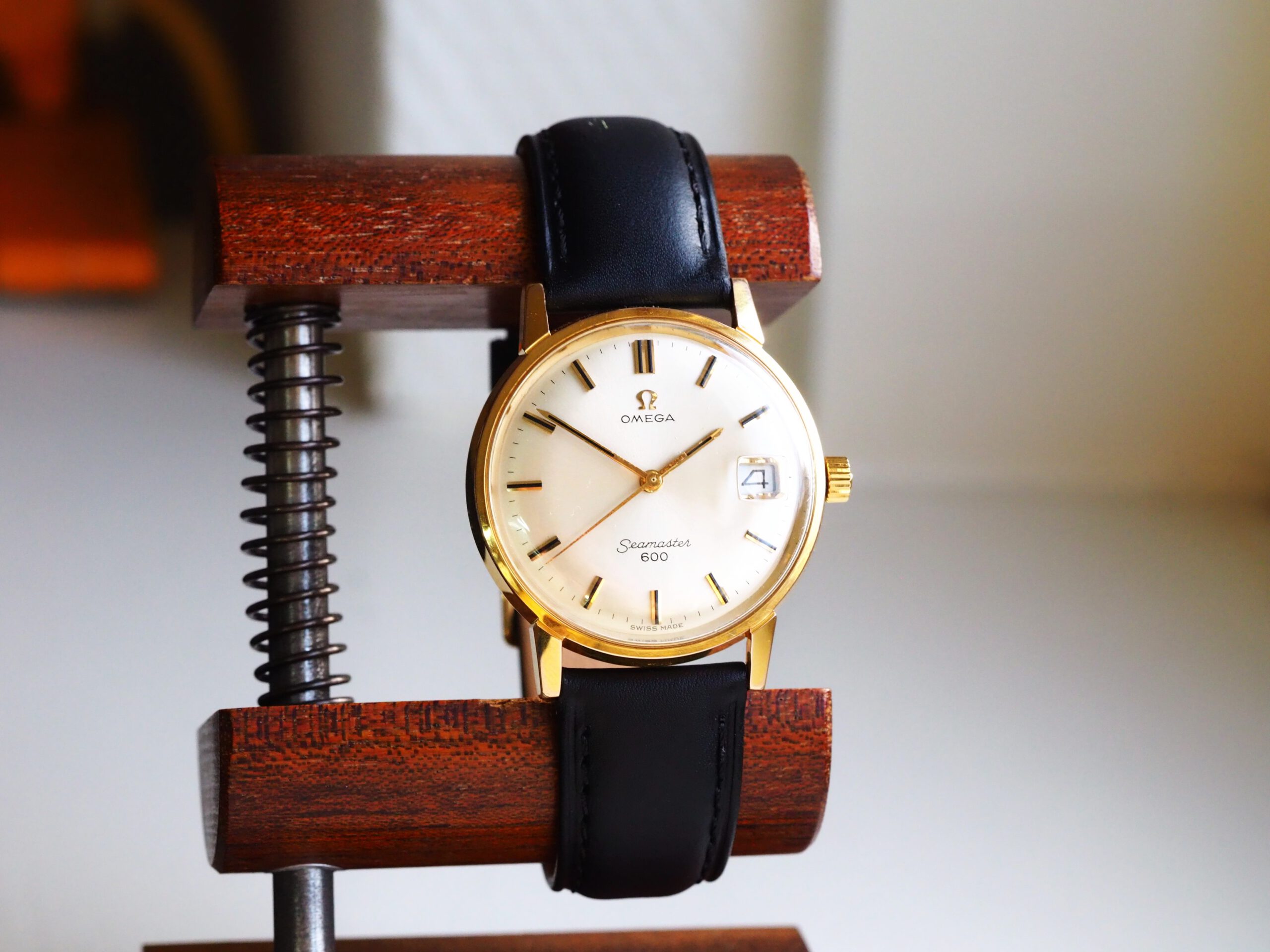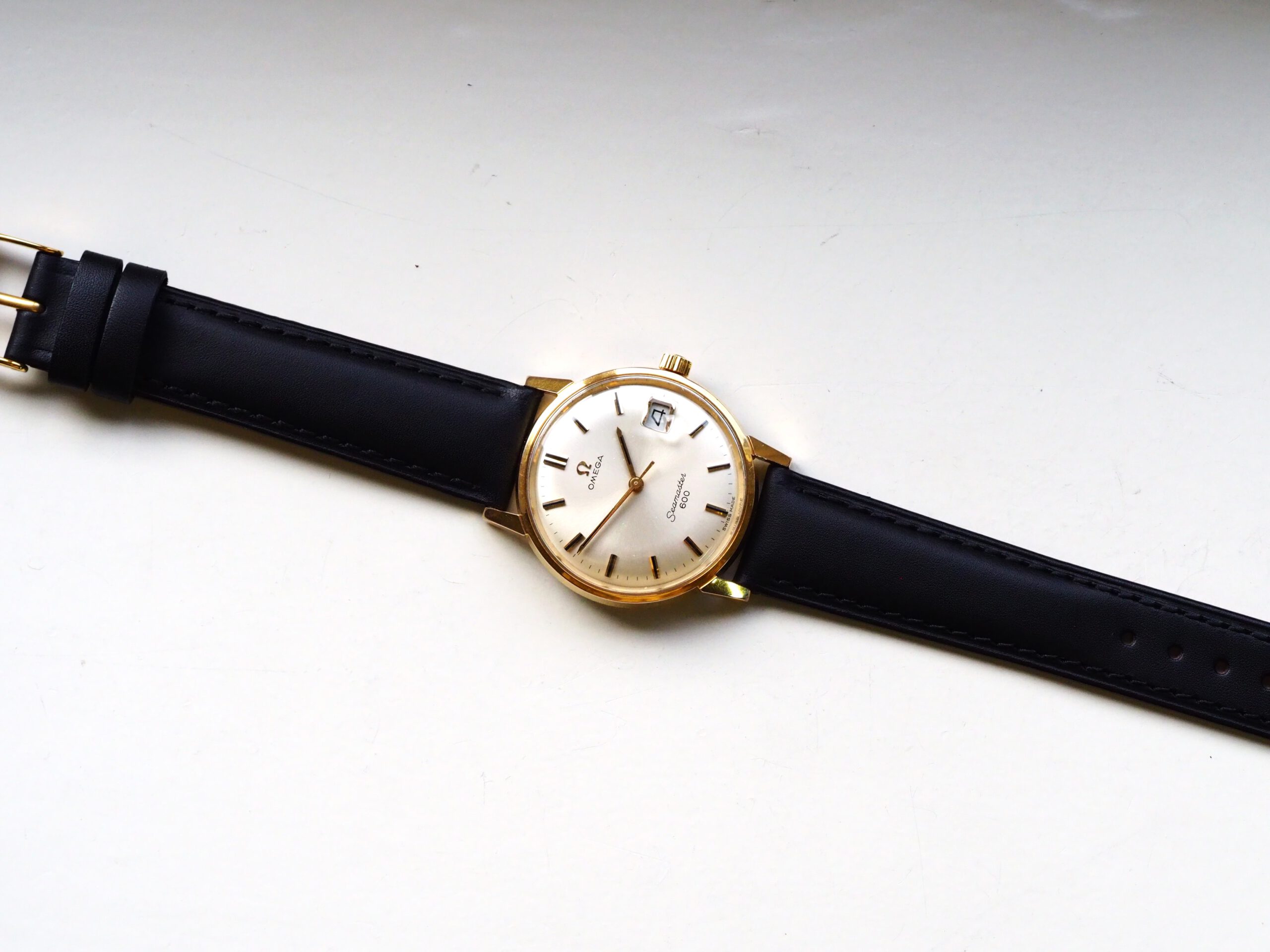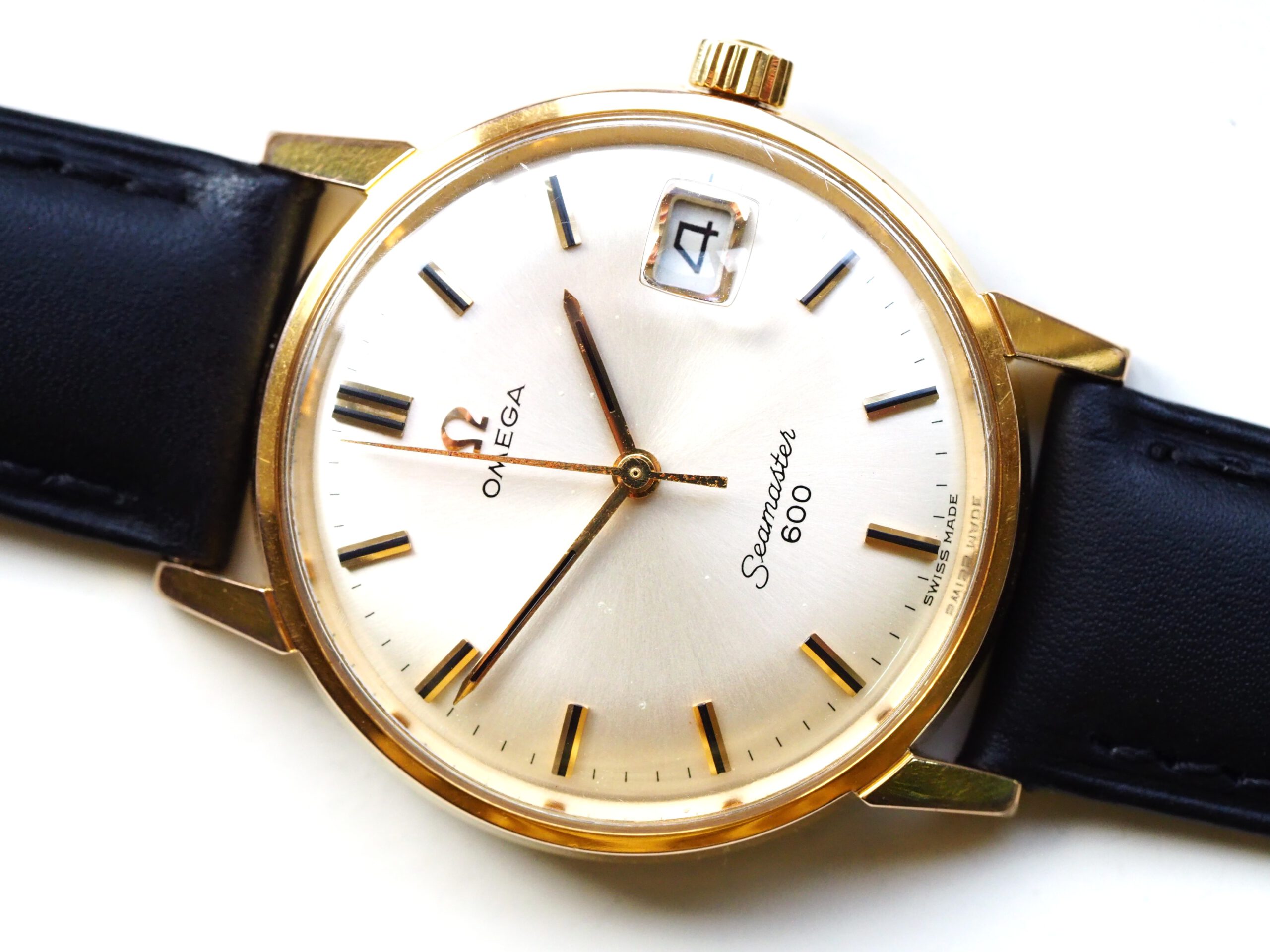 Referentie 136.011 Omega Seamaster 600, serienummer 22371788 productiejaar 1965. Prachtige vintage Seamaster 600 met 40 micron vergulde kast, origineel gesigneerde kroon/plexiglas en volledig geserviced uurwerk. Schitterende wijzerplaat met opgelegde uur markeringen met zwarte onyx inleg. Een prachtig klassiek horloge met een tijdloze uitstraling dat nooit verveelt. In de kast vinden we een Omega 611 hand opgewonden uurwerk met datumfunctie welke net volledig is geserviced (december 2025) en zeer goed functioneert. Tijdens deze service is de kast ook ultrasoon gereinigd en voorzien van een nieuwe zwarte leren band. De wijzerplaat heeft een paar kleine spikkels en er is wat oxidatie op de wijzers. Al met al een zeer mooi horloge met slechts milde gebruikssporen, zeker gezien de leeftijd. Kastdiameter 34mm zonder kroon.