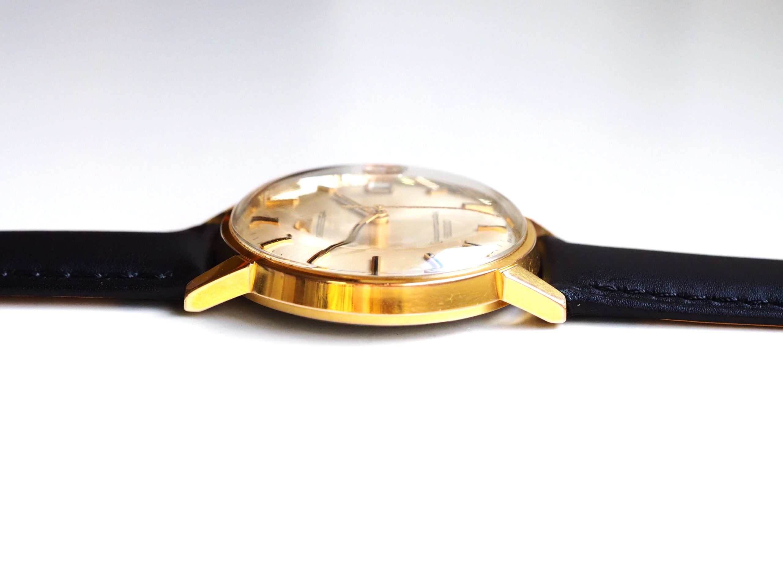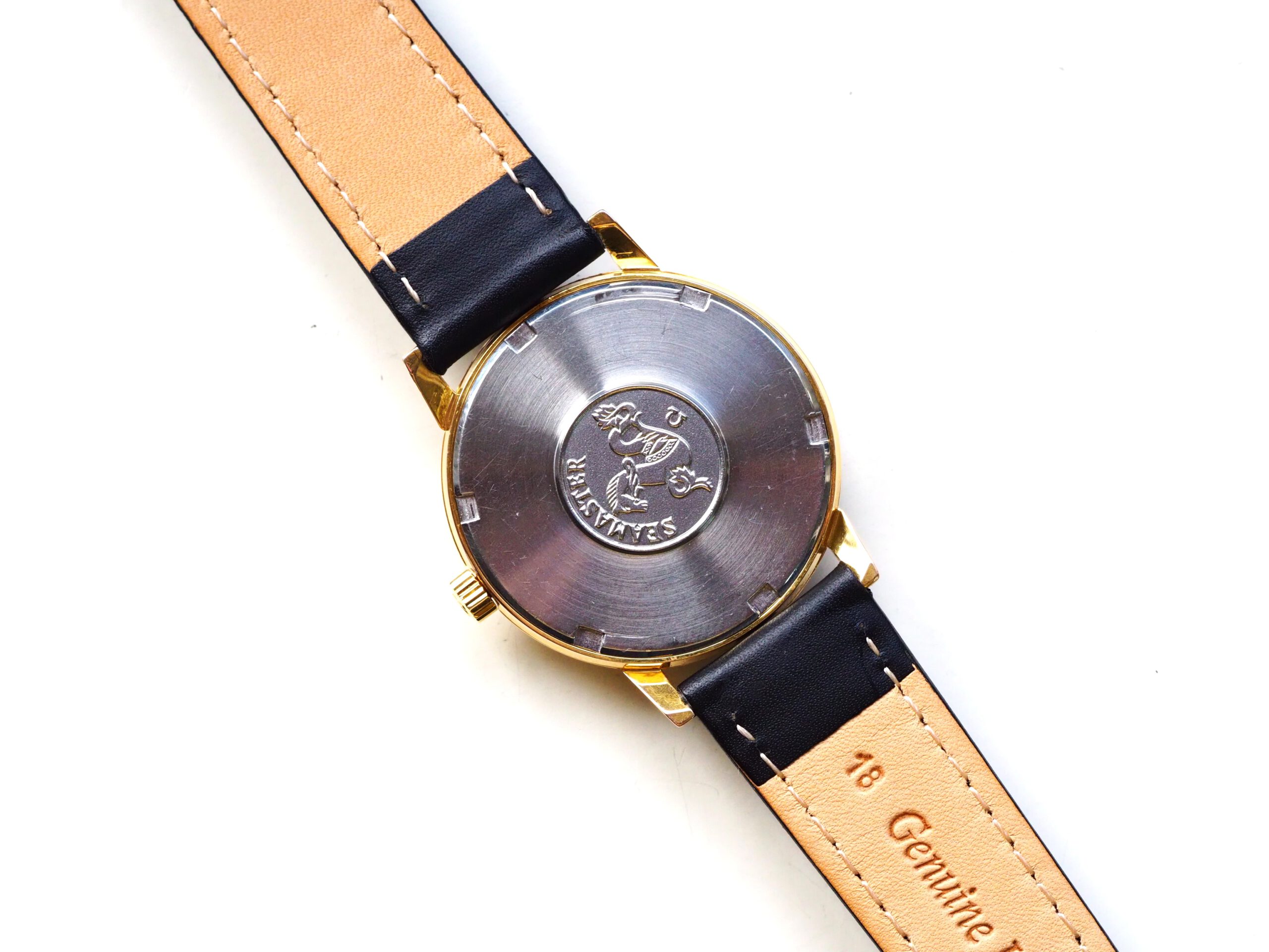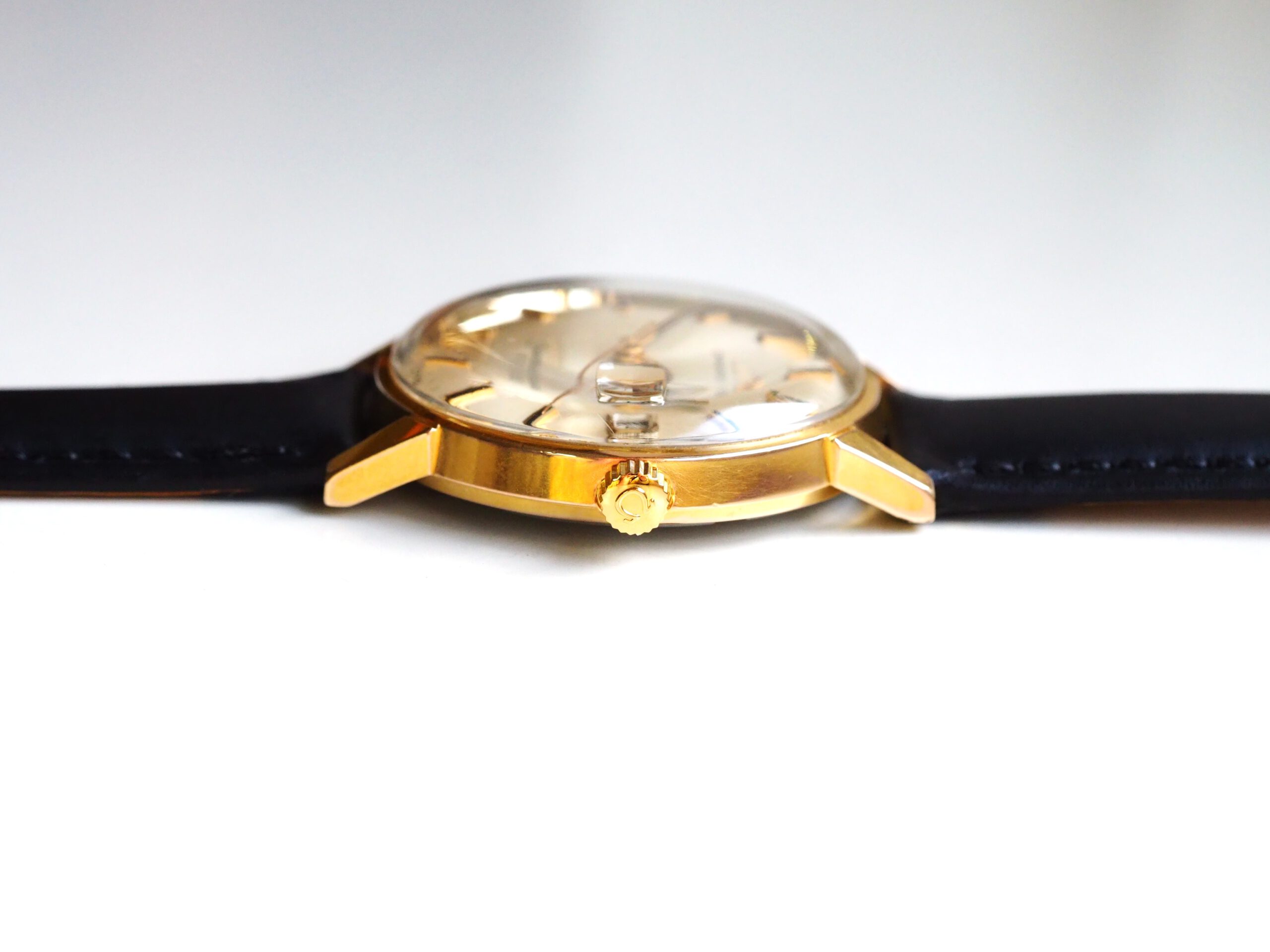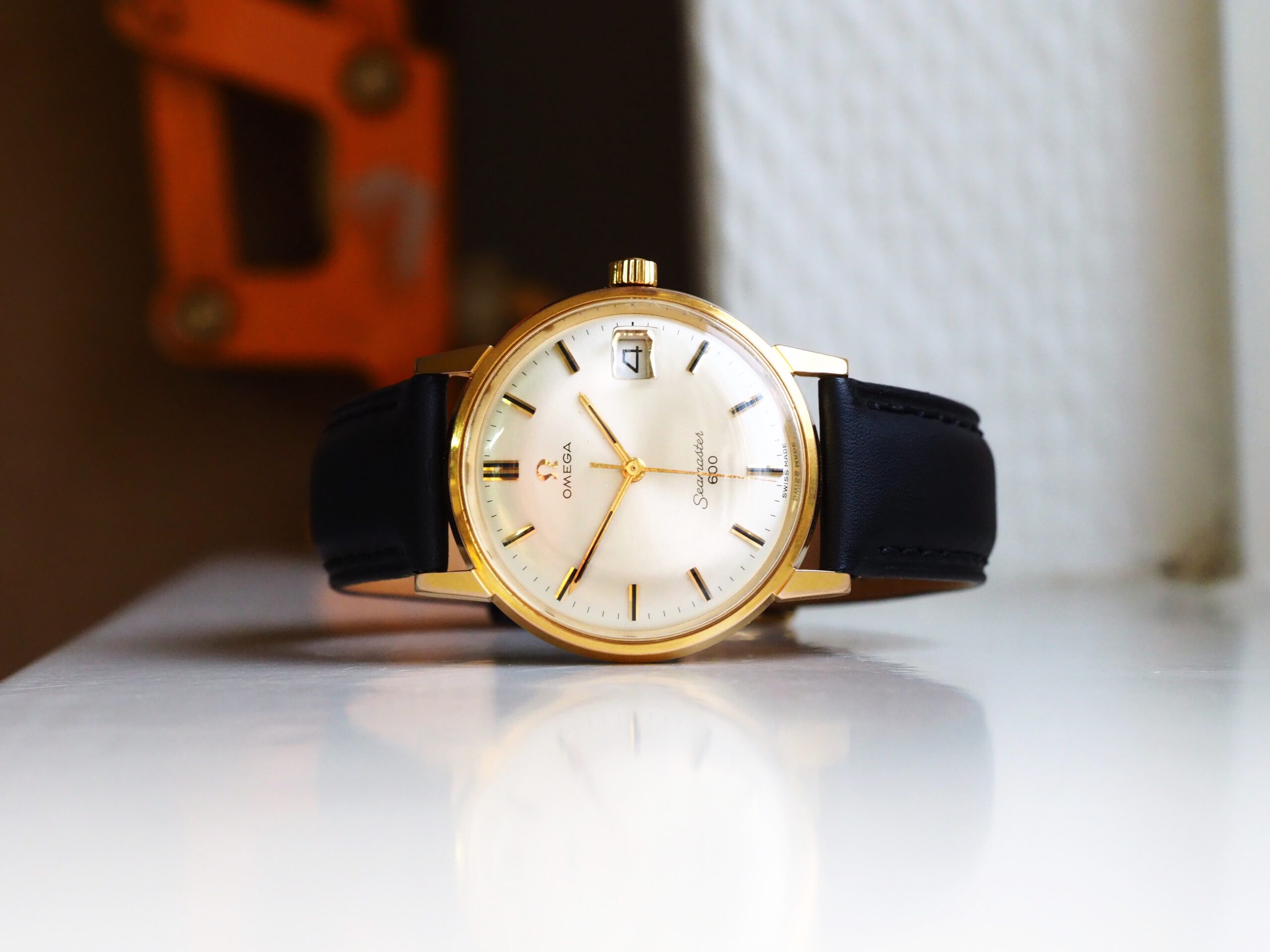Referentie 136.011 Omega Seamaster 600, serienummer 22371788 productiejaar 1965. Prachtige vintage Seamaster 600 met 40 micron vergulde kast, origineel gesigneerde kroon/plexiglas en volledig geserviced uurwerk. Schitterende wijzerplaat met opgelegde uur markeringen met zwarte onyx inleg. Een prachtig klassiek horloge met een tijdloze uitstraling dat nooit verveelt. In de kast vinden we een Omega 611 hand opgewonden uurwerk met datumfunctie welke net volledig is geserviced (december 2025) en zeer goed functioneert. Tijdens deze service is de kast ook ultrasoon gereinigd en voorzien van een nieuwe zwarte leren band. De wijzerplaat heeft een paar kleine spikkels en er is wat oxidatie op de wijzers. Al met al een zeer mooi horloge met slechts milde gebruikssporen, zeker gezien de leeftijd. Kastdiameter 34mm zonder kroon.