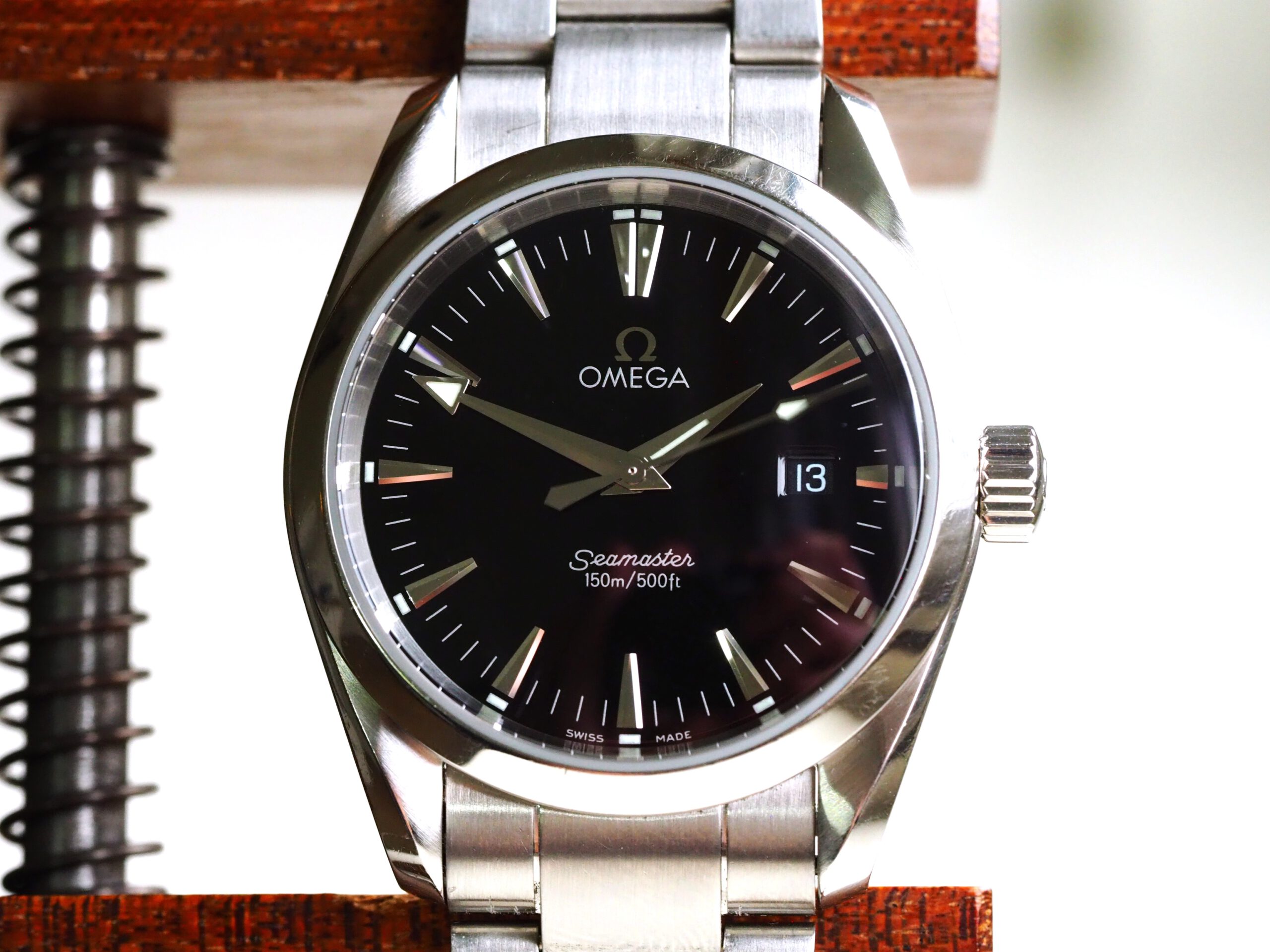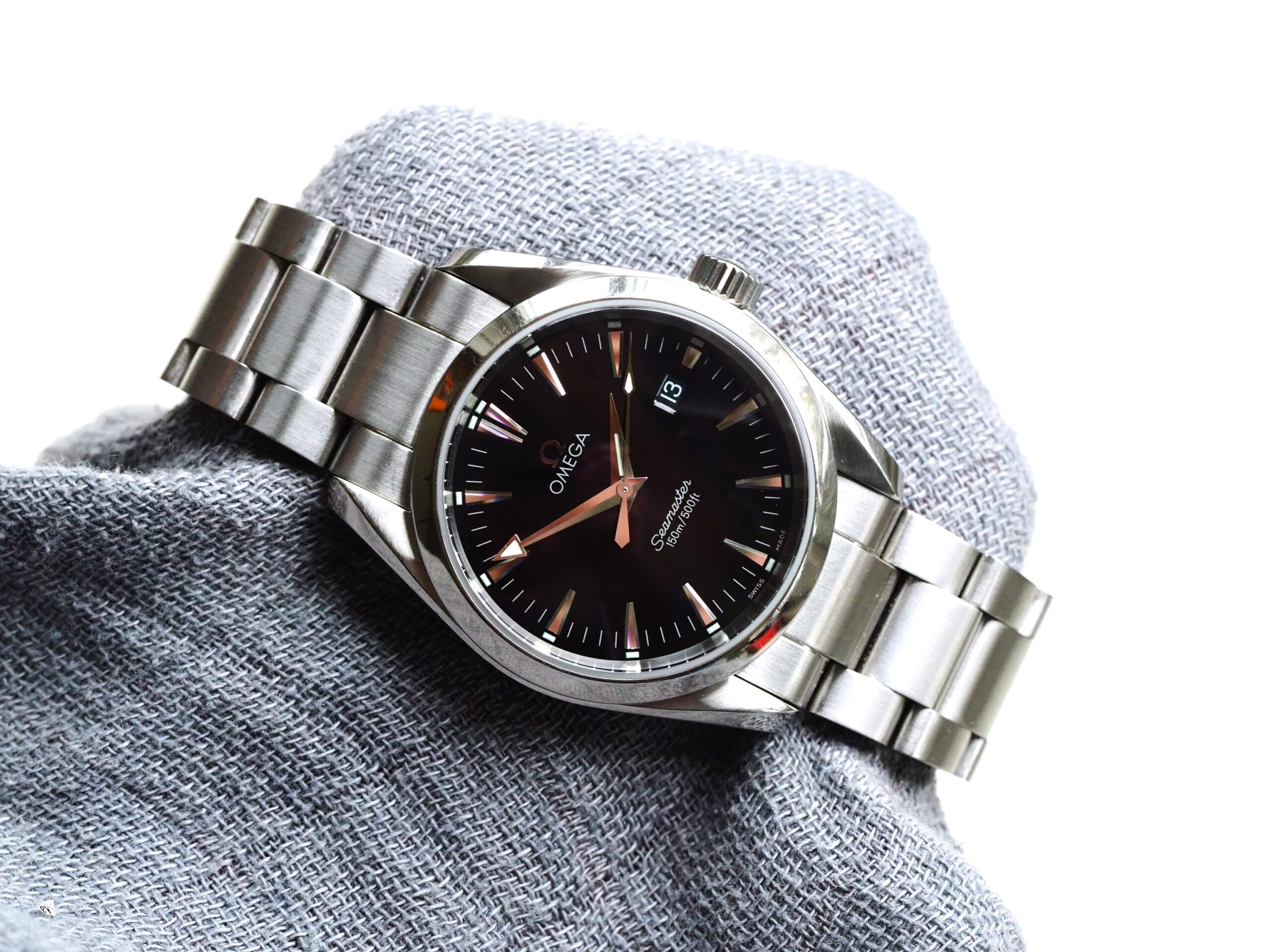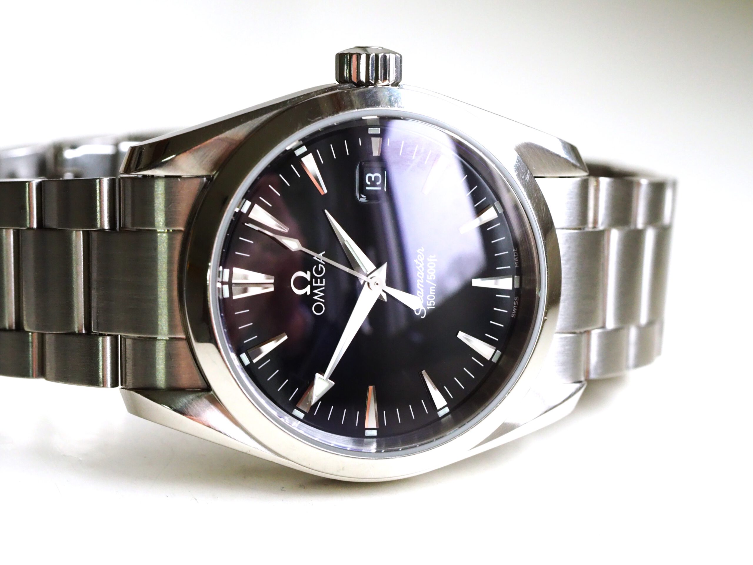 Referentie 2518.50.00 Omega Seamaster Aqua Terra, serienummer 59178020 geproduceerd rond 2000-2010. Prachtige mid-size 36mm Seamaster Aqua Terra met glanzend zwarte wijzerplaat in goede originele staat. Voorafgaande verkoop heb ik het horloge en de band grondig gereinigd, een nieuwe batterij geplaatst, pakkingen ingevet en de waterdichtheid getest op 10bar/100meter. Het horloge lijkt grotendeels ongepolijst met lichte gebruikssporen. De stalen band is geschikt voor een polsomtrek van circa 18cm in de huidige lengte. Kortom een prachtig horloge, klaar voor een nieuwe eigenaar.
