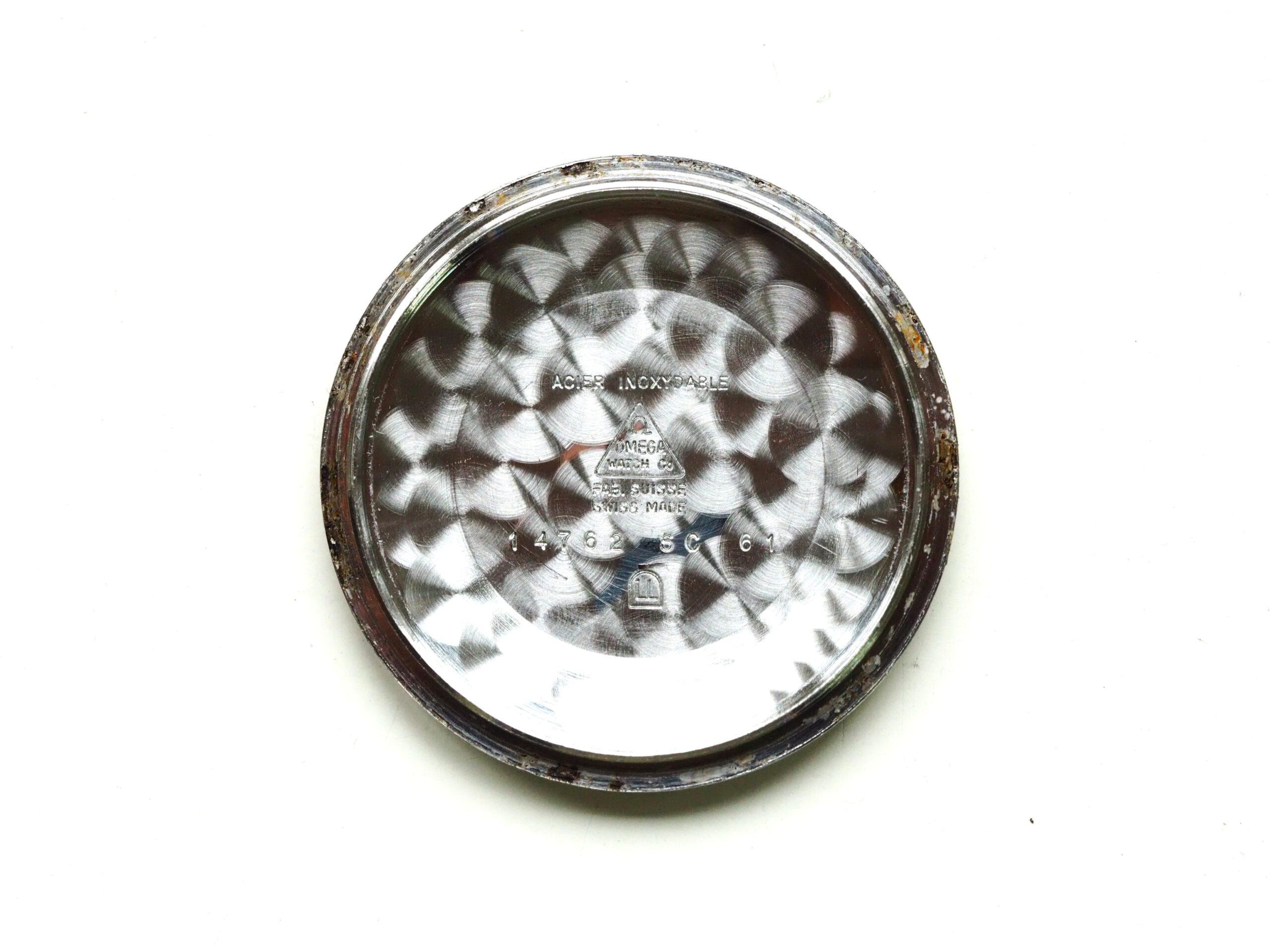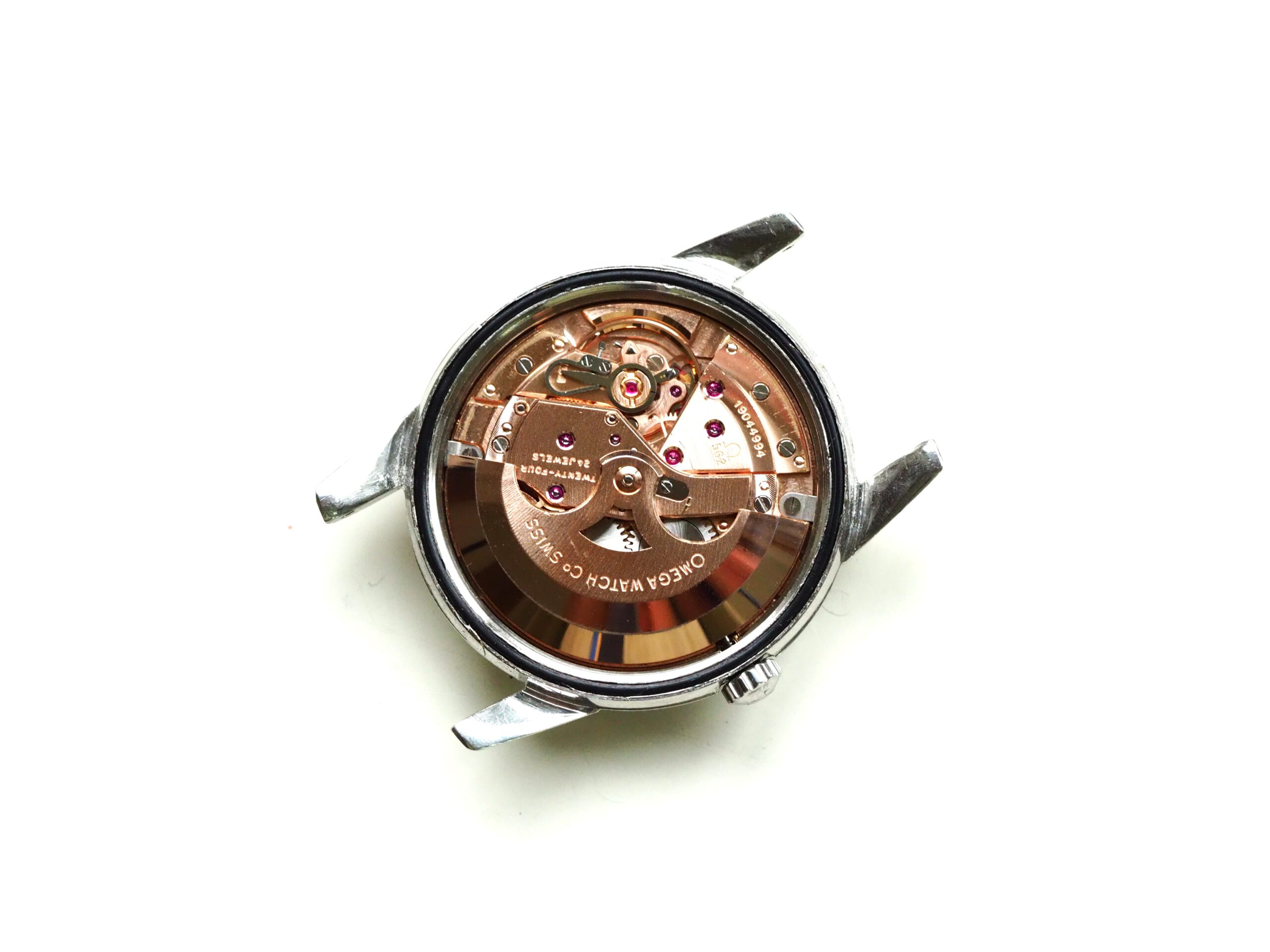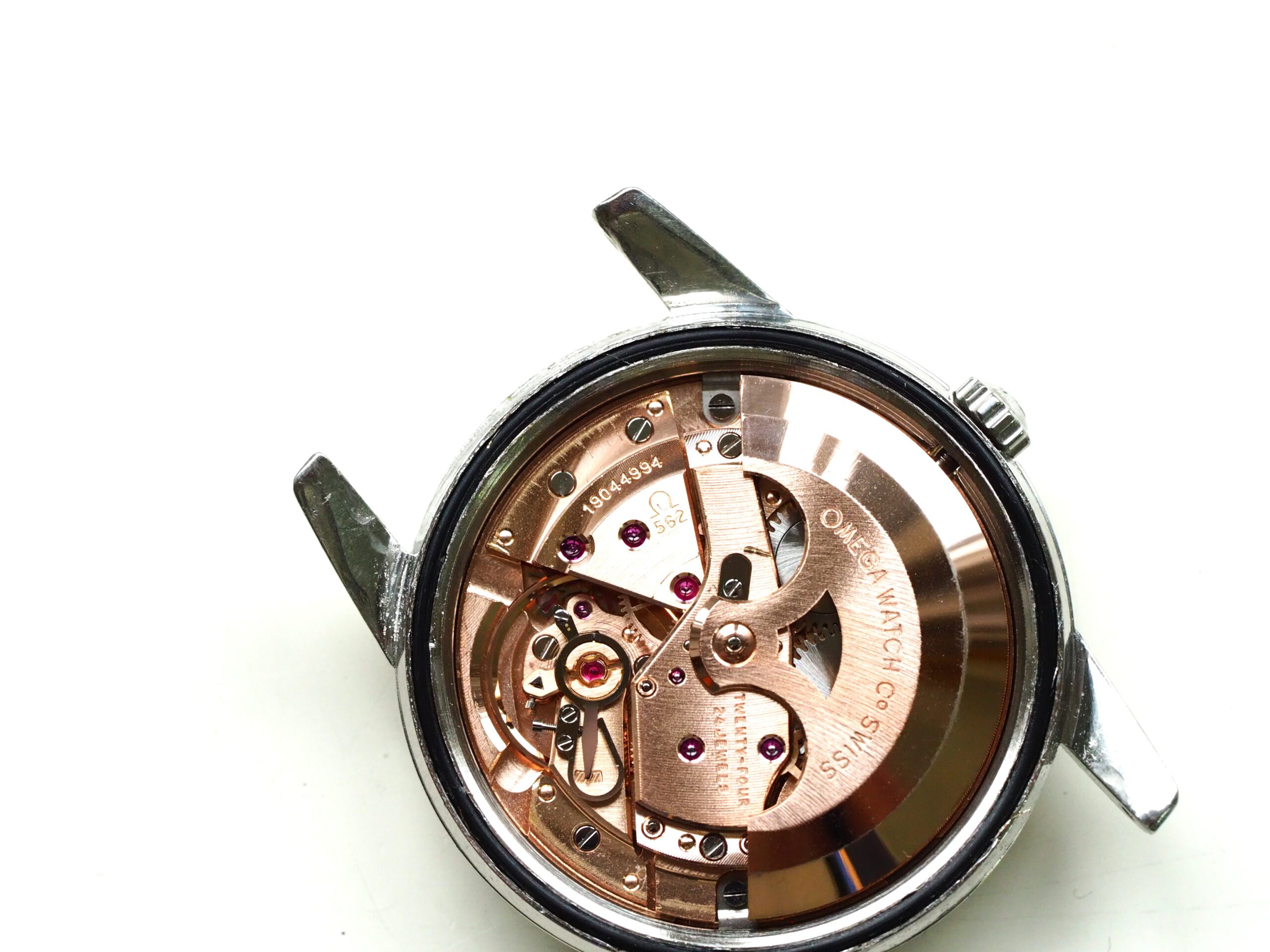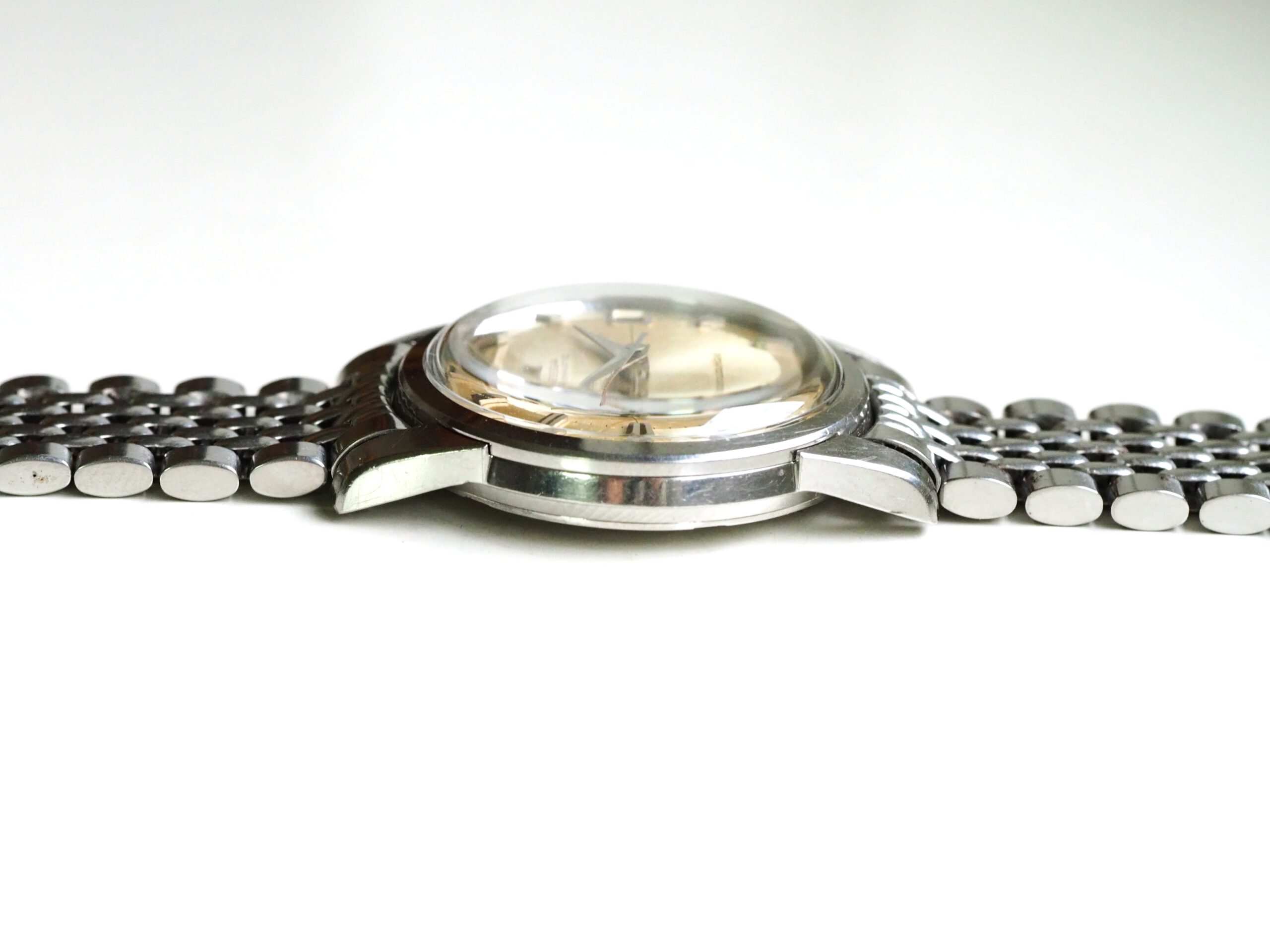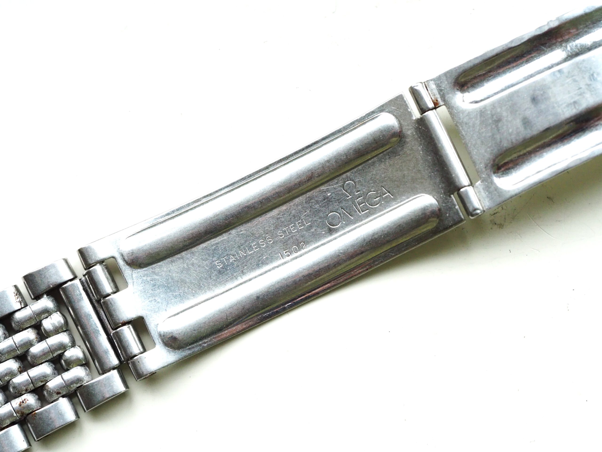 Referentie 14762 SC 61 Omega Seamaster Automatic, serienummer 19044994 productiejaar 1961. Prachtige vintage stalen Seamaster in zeer goede staat met BOR band (beads of rice) en een volledig geserviced uurwerk. Het horloge heeft een schitterende wijzerplaat boordevol details; crosshair, grote opgelegde uurmarkeringen, een sunburst in het midden en een cirkelvormig borstelpatroon aan de buitenkant. De prachtige dauphine wijzers, kenmerkend voor deze vintage Omega’s, maken het geheel compleet. In de kast vinden we een Omega 562 automatisch uurwerk met datumfunctie welke net volledig is geserviced (januari 2026) en perfect functioneert. Tijdens deze service zijn tevens de kast en de band ultrasoon gereinigd en is de kast voorzien van een nieuw plexiglas (niet origineel Omega). Het horloge wordt geleverd met een 1502 band, geschikt voor een polsomtrek van circa 16,5-18 cm. De algehele staat is zeer goed, met slechts lichte gebruikssporen en een gelijkmatige patina op de wijzerplaat. Kastdiameter 34mm zonder kroon.