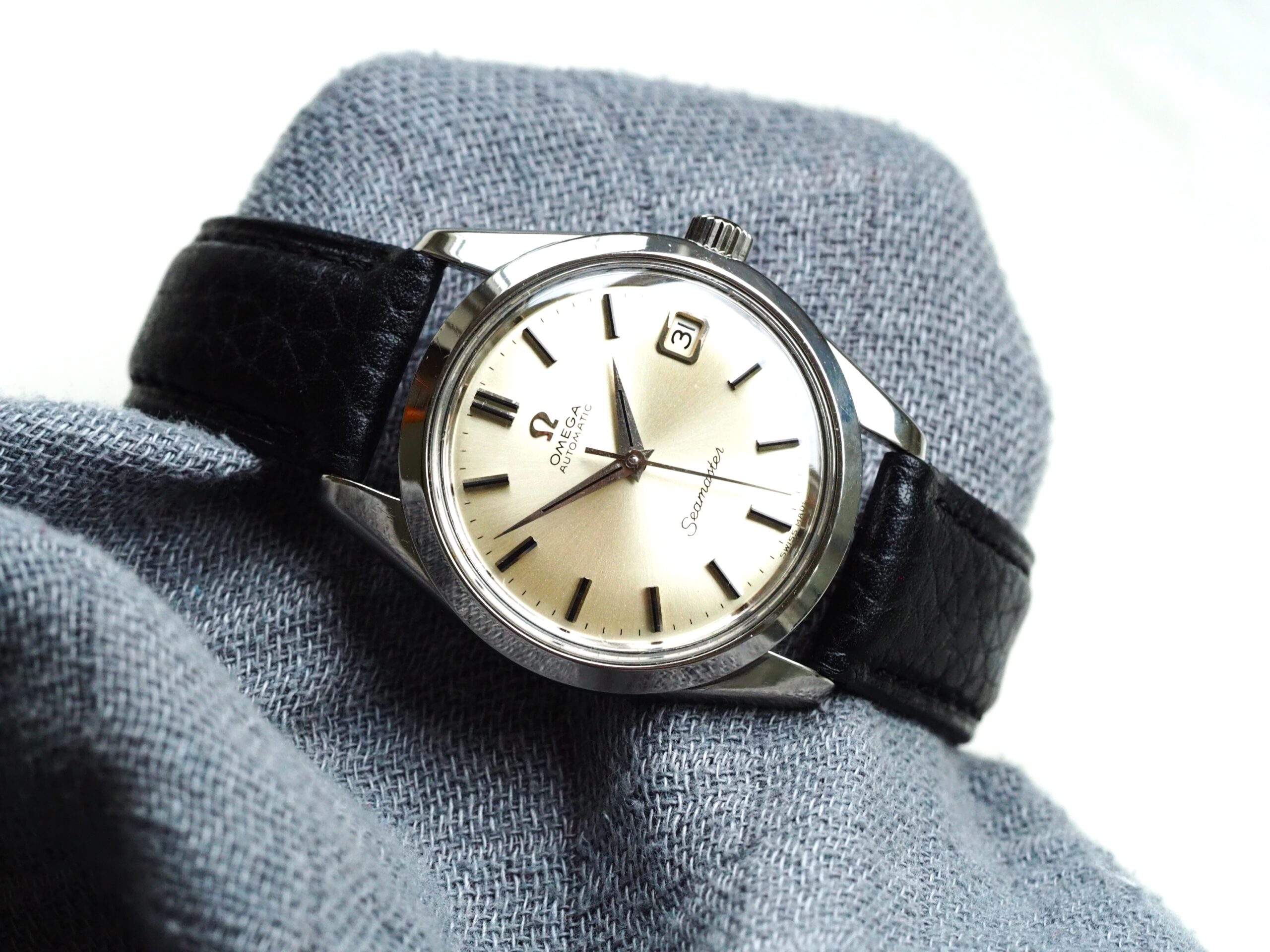 Referentie 166.010-67 Omega Seamaster Automatic, serienummer 24800180 productiejaar 1967. Deze populaire Omega 166.010 Seamaster verkeert in zeer goede staat met een stalen kast, Omega gesigneerde kroon/plexiglas en een volledig geserviced uurwerk. Het horloge heeft een zilverkleurige sunburst wijzerplaat met onyx ingelegde uur markeringen en elegante dauphine wijzers. Een prachtige klassieke uitstraling met een tijdloze look die nooit verveelt. In de kast vinden we een Omega 565 automatisch uurwerk (datum met quick-set) welke net volledig is geserviced (januari 2026) en uitstekend functioneert. Tijdens deze service is de kast ook ultrasoon gereinigd en voorzien van een nieuwe zwarte leren band. De conditie is zeer goed met nauwelijks gebruikssporen en een lichte gelijkmatige patina op de wijzerplaat. Kortom een prachtig horloge, klaar voor een nieuwe eigenaar. Kastdiameter 35mm zonder kroon.