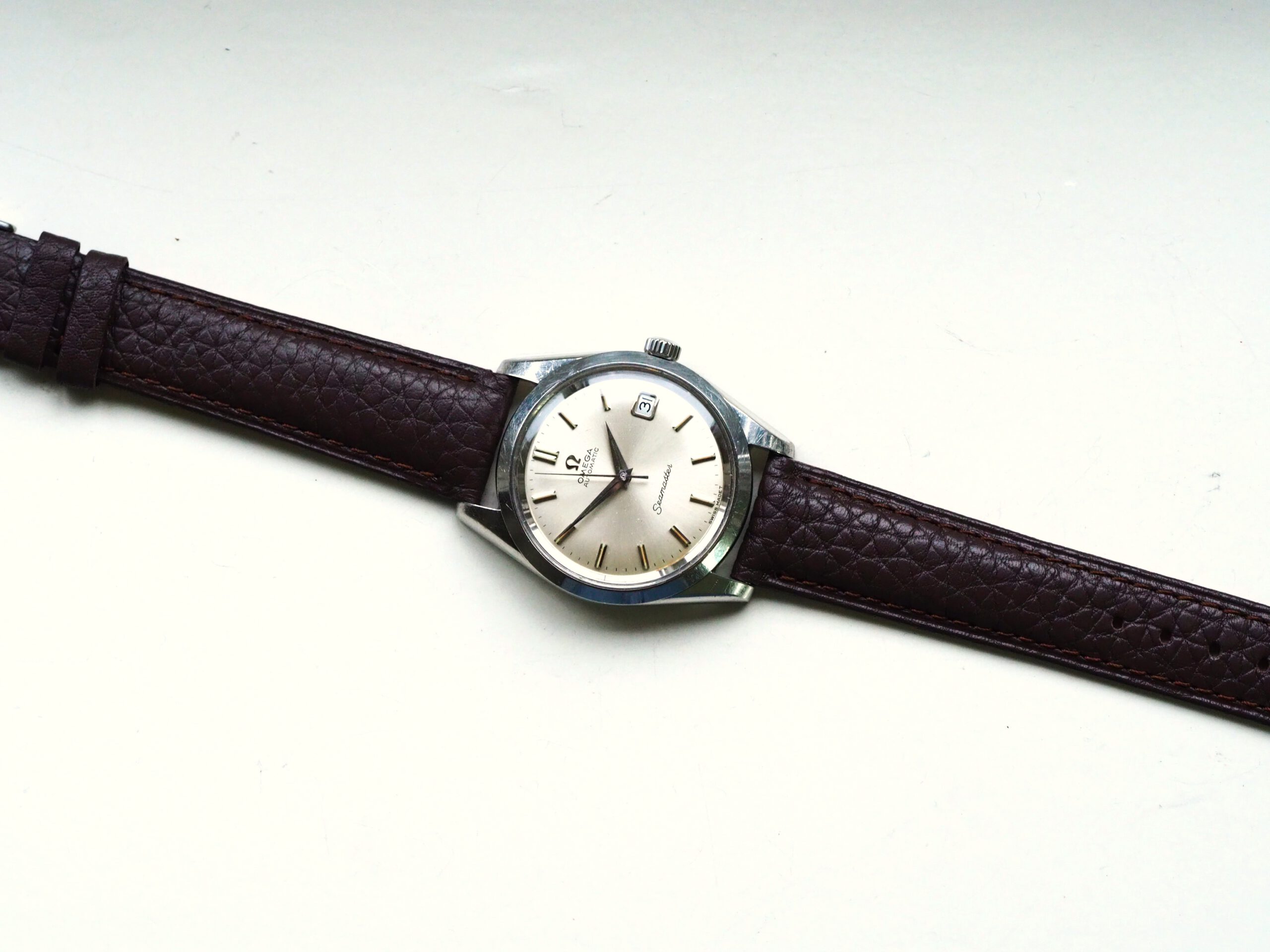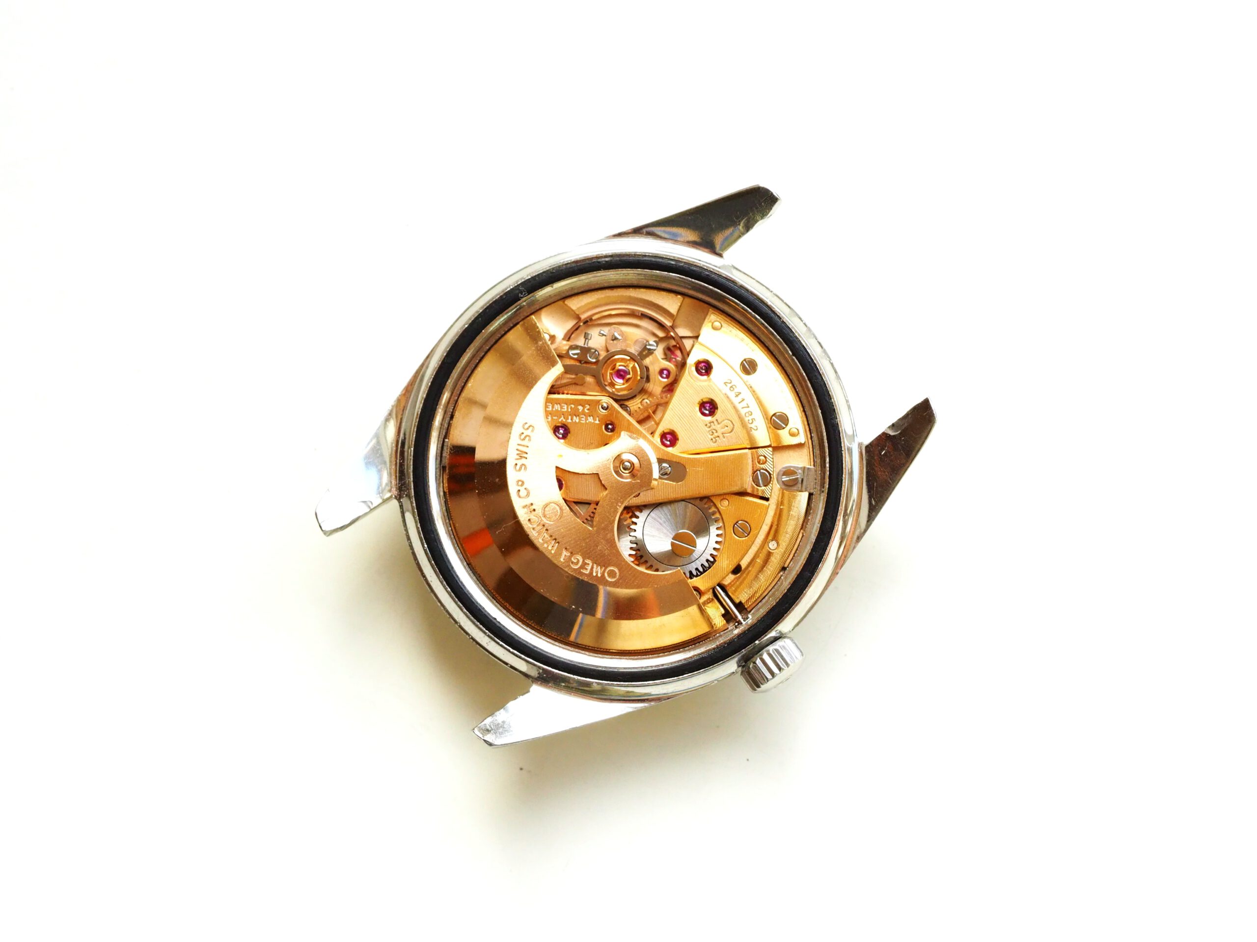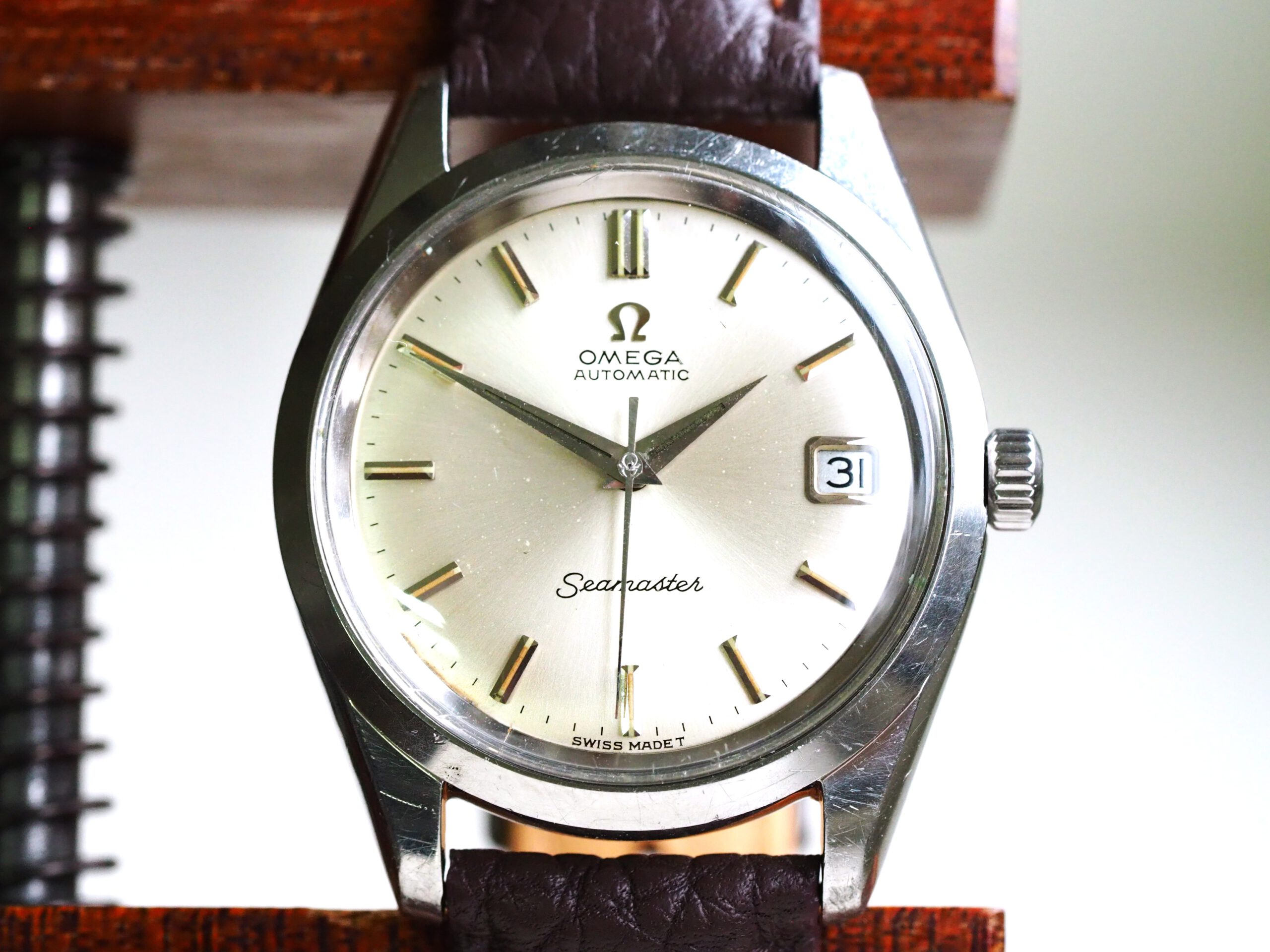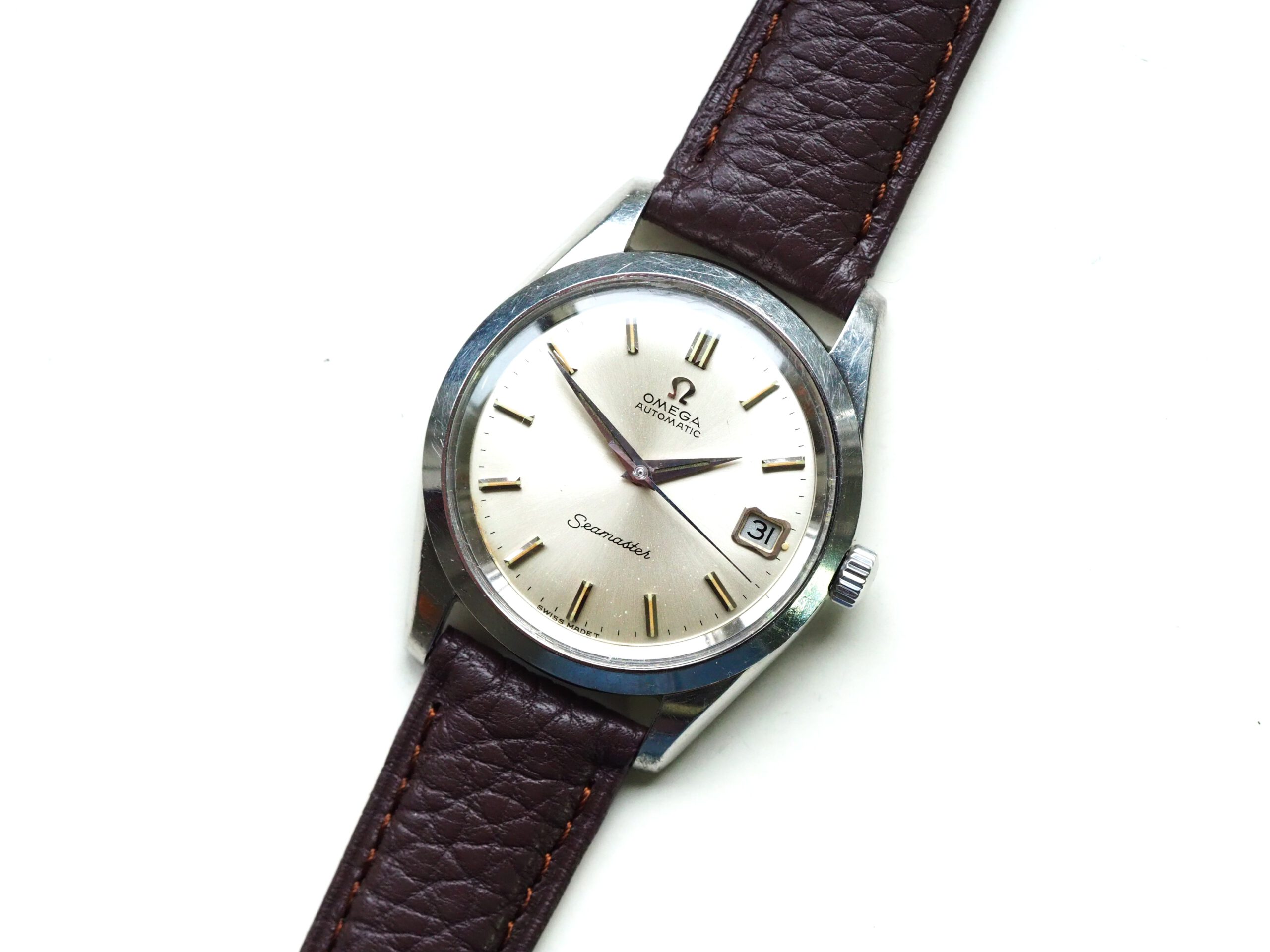 Referentie 166.010-67 Omega Seamaster Automatic, serienummer 26417852 productiejaar 1967. Populaire Omega 166.010 Seamaster in goede originele staat met stalen kast en Omega gesigneerde kroon/plexiglas. Het horloge heeft een interessante wijzerplaat met tritium lumen bovenop de uur markeringen. De elegante dauphine wijzers, kenmerkend voor Omega’s uit deze periode, maken het geheel compleet. In de kast vinden we een Omega 565 automatisch uurwerk met datumfunctie en quick-set. Het uurwerk is in uitstekende conditie: schoon, goed geolied en functioneert perfect. Normaal gesproken service ik vrijwel al mijn horloges voorafgaande verkoop, maar in dit geval was dat echt niet nodig. Wel heb ik de kast ultrasonisch gereinigd en voorzien van een nieuwe bruine leren band. Over het algemeen in goede staat met normale gebruikssporen gezien de leeftijd en een lichte patina op de wijzerplaat. Kastdiameter 35mm zonder kroon.