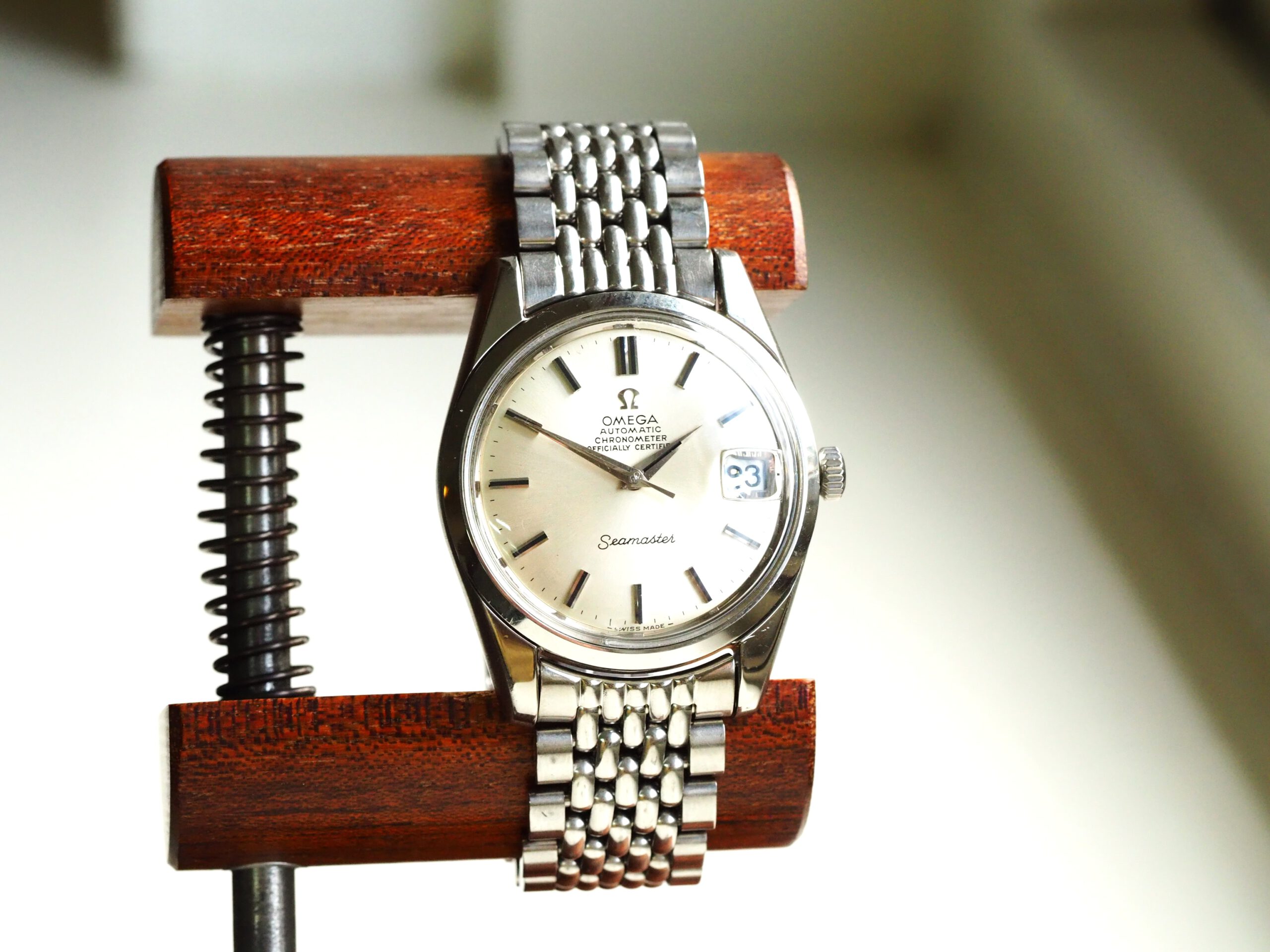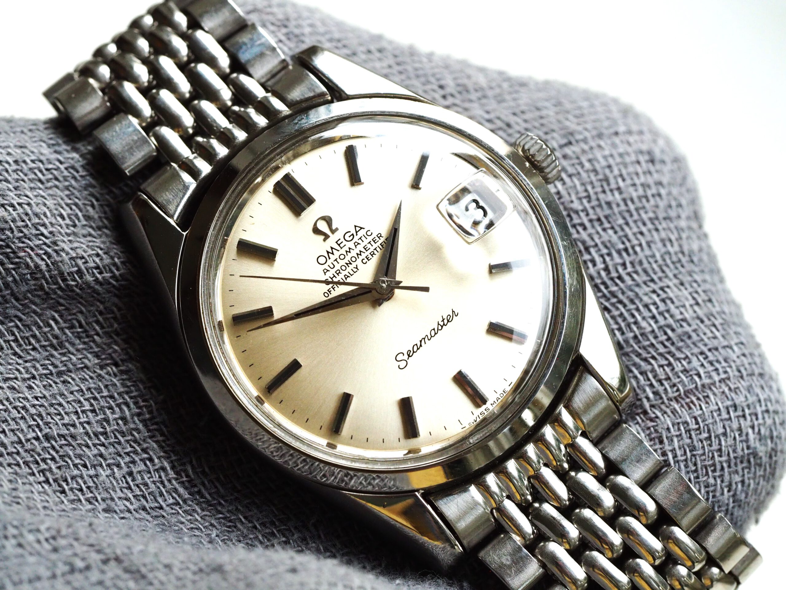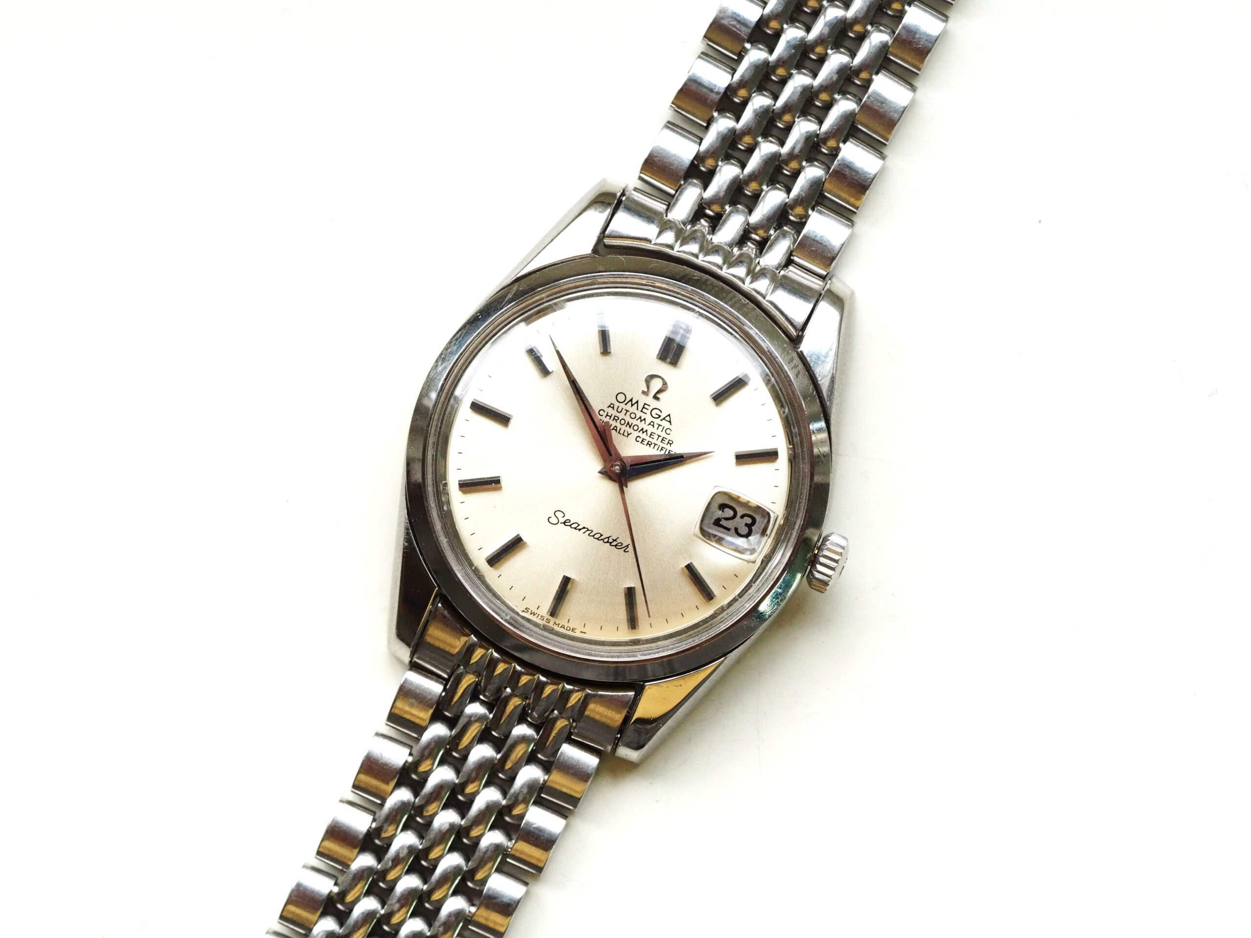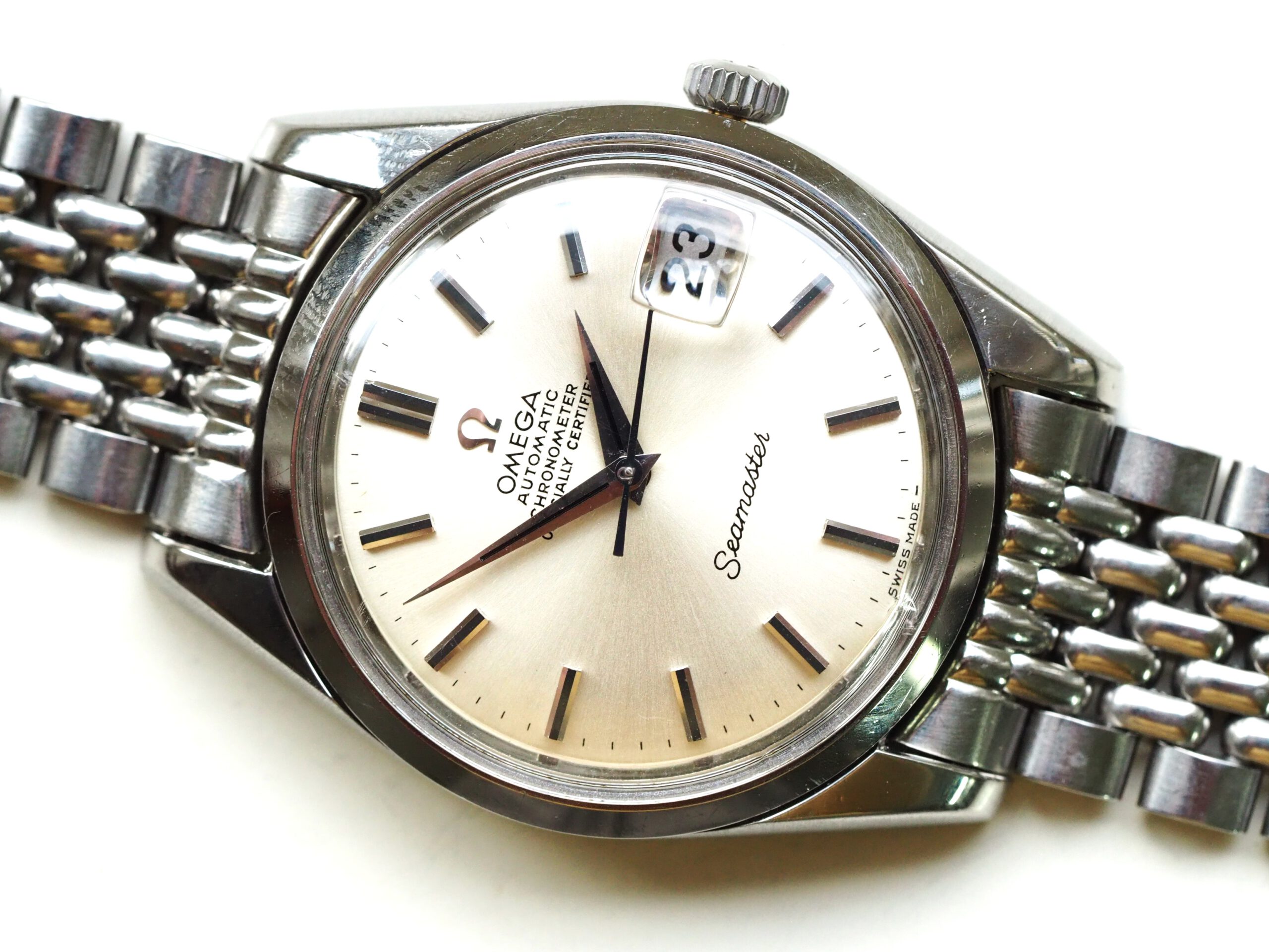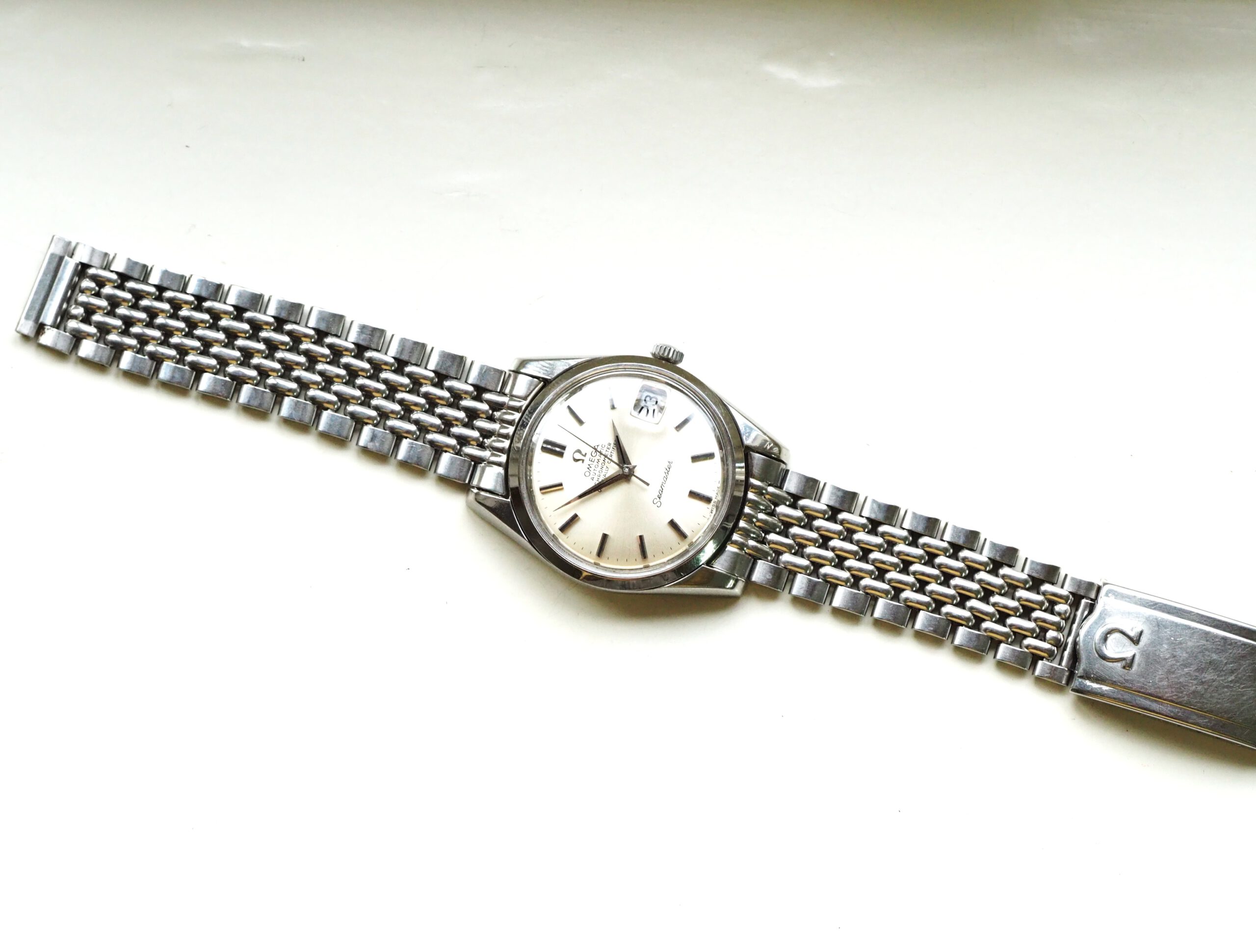 Referentie 168.024 Omega Seamaster Chronometer, serienummer 30329333 productiejaar 1970. Prachtige roestvrijstalen Seamaster met chronometer gecertificeerd uurwerk in zeer goede staat en recentelijk geserviced. Het horloge heeft een originele Omega kroon, plexiglas en 1036 BOR (beads of rice) band. De wijzerplaat en wijzers zijn ook in zeer goede staat zonder noemenswaardige patina/veroudering. In de kast vinden we een Omega 564 automatisch chronometer gecertificeerd uurwerk (datum met quick-set) welke net volledig is geserviced (Januari 2026) en uitstekend functioneert. Tijdens deze service zijn tevens de kast en band ultrasoon gereinigd en is het originele Omega plexiglas gepolijst. Zoals eerder vermeld, is het horloge in zeer goede staat, maar is het in het verleden wel (gedeeltelijk) gepolijst. De 1036 BOR band heeft, net als vrijwel al deze banden, wat rek en is in de huidige lengte geschikt voor een polsomtrek van rond de 16-17,5cm (krappe 18cm). Ik kan het horloge ook zonder de band verkopen voor een iets lagere prijs. Kastdiameter 35mm zonder kroon.