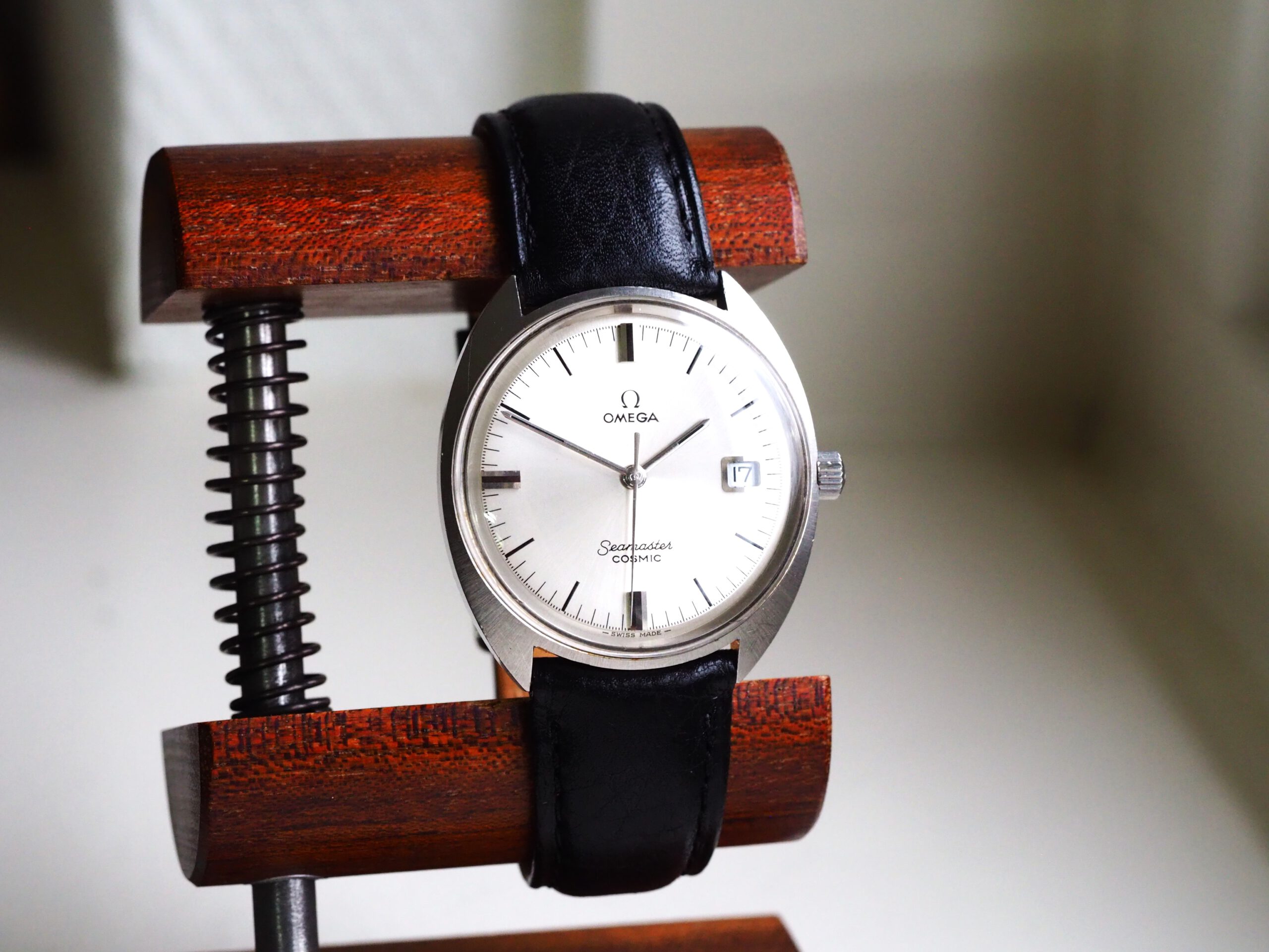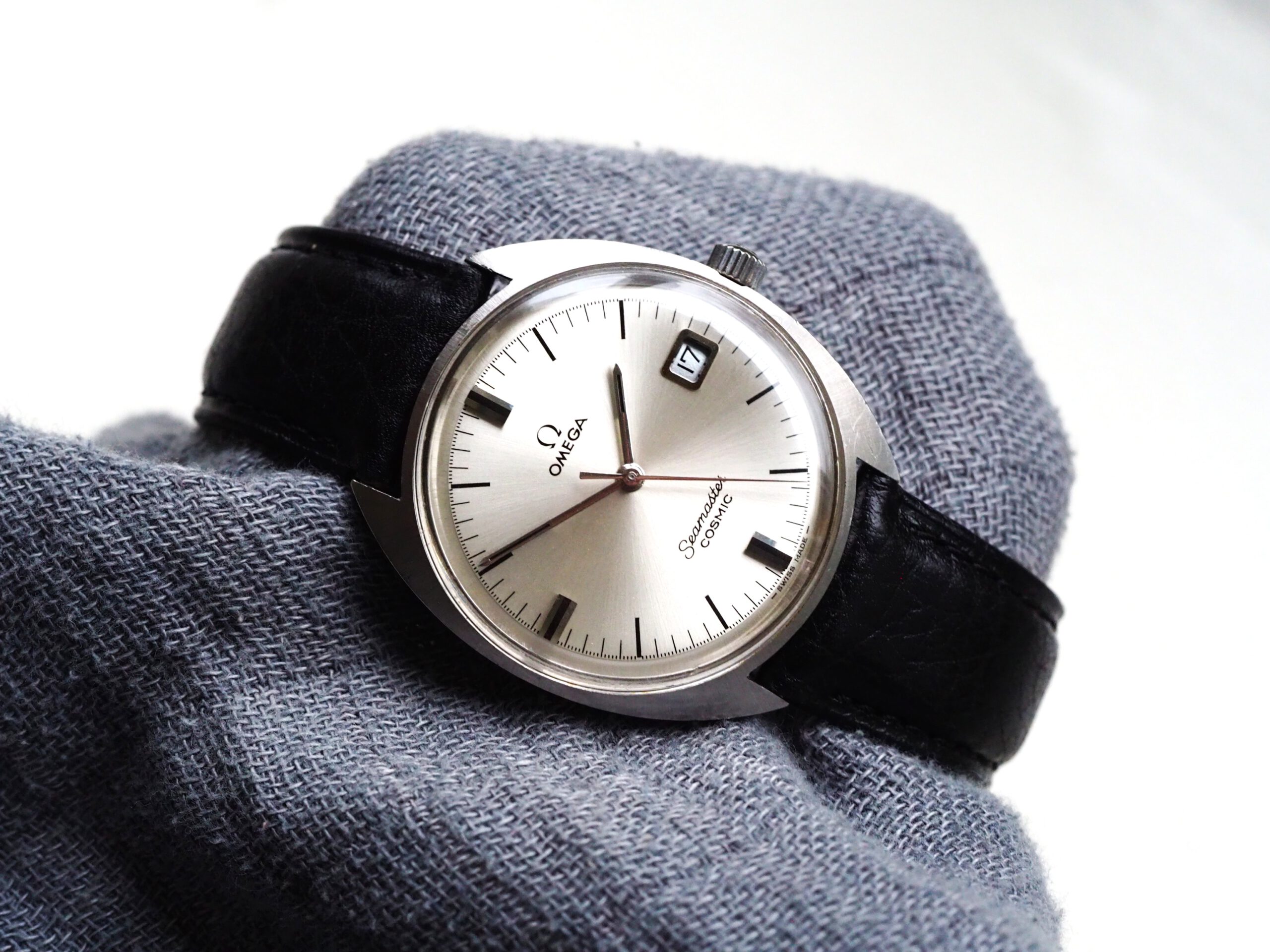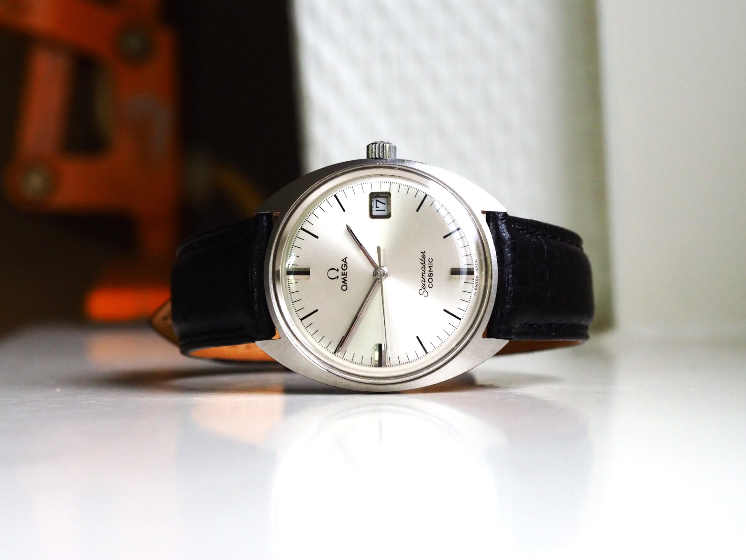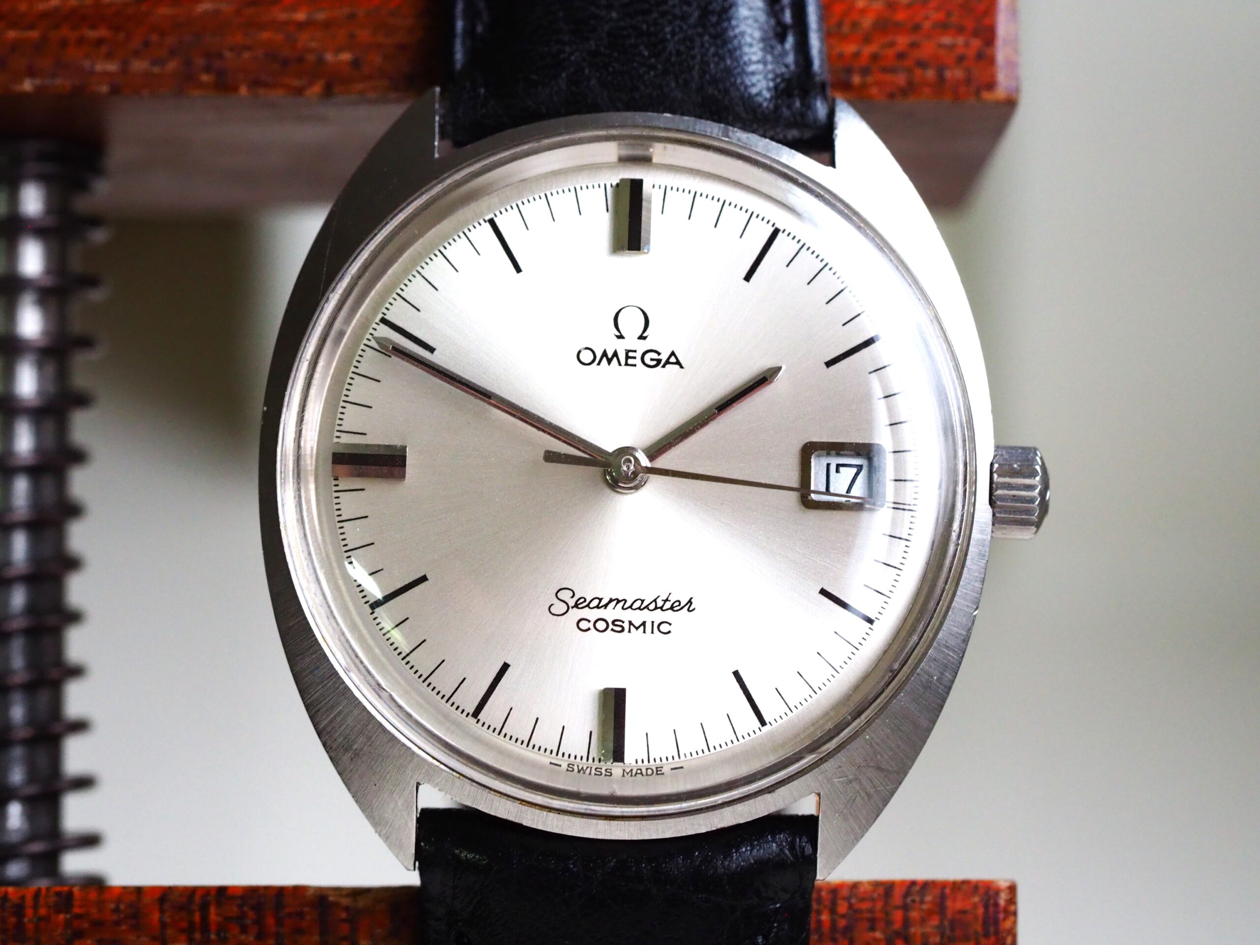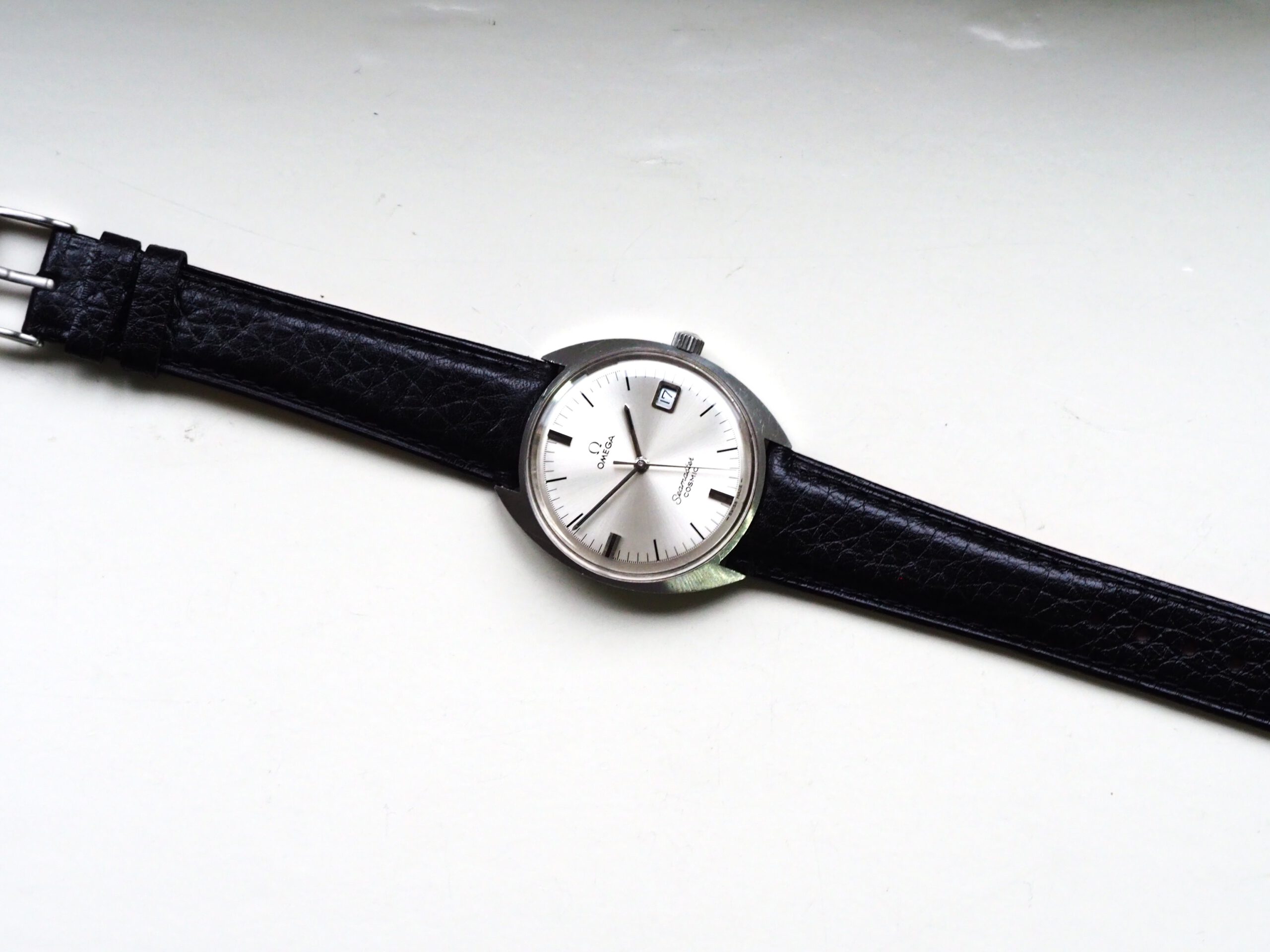 Referentie 136.017 Omega Seamaster Cosmic, serienummer 29235294 productiejaar 1970. Prachtige vintage Omega met een scherpe ongepolijste kast, originele kroon/plexiglas en volledig geserviced uurwerk. Het horloge heeft een klassieke zilverkleurige wijzerplaat met sunburst patroon, zwarte accenten en bijpassende wijzers. Over het algemeen gezien zeer goede staat met slechts milde gebruikssporen, zeker gezien de leeftijd. In de kast bevindt zich een handmatig opgewonden Omega 613 uurwerk (datum met quick-set) welke net volledig is geserviced (december 2025) en uitstekend functioneert. Tijdens deze service is tevens de kast ultrasoon gereinigd en voorzien van een nieuwe zwarte leren band. Al met al een prachtige vintage Omega, klaar voor een nieuwe eigenaar! Kastdiameter 35mm zonder kroon.