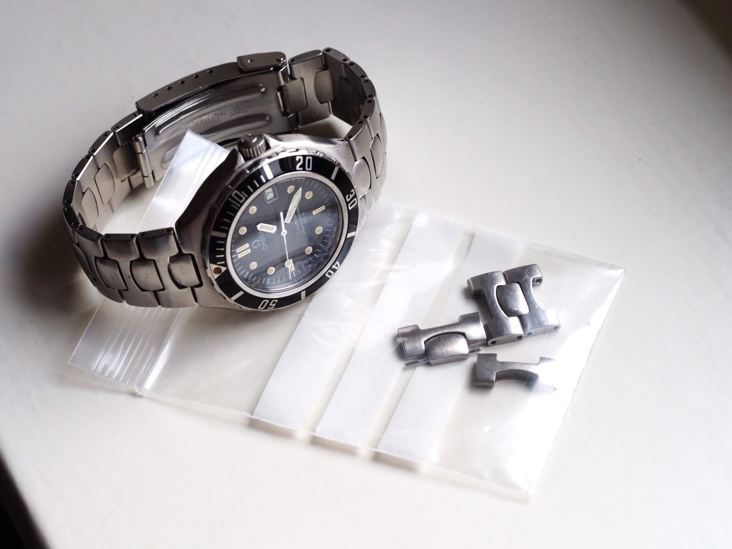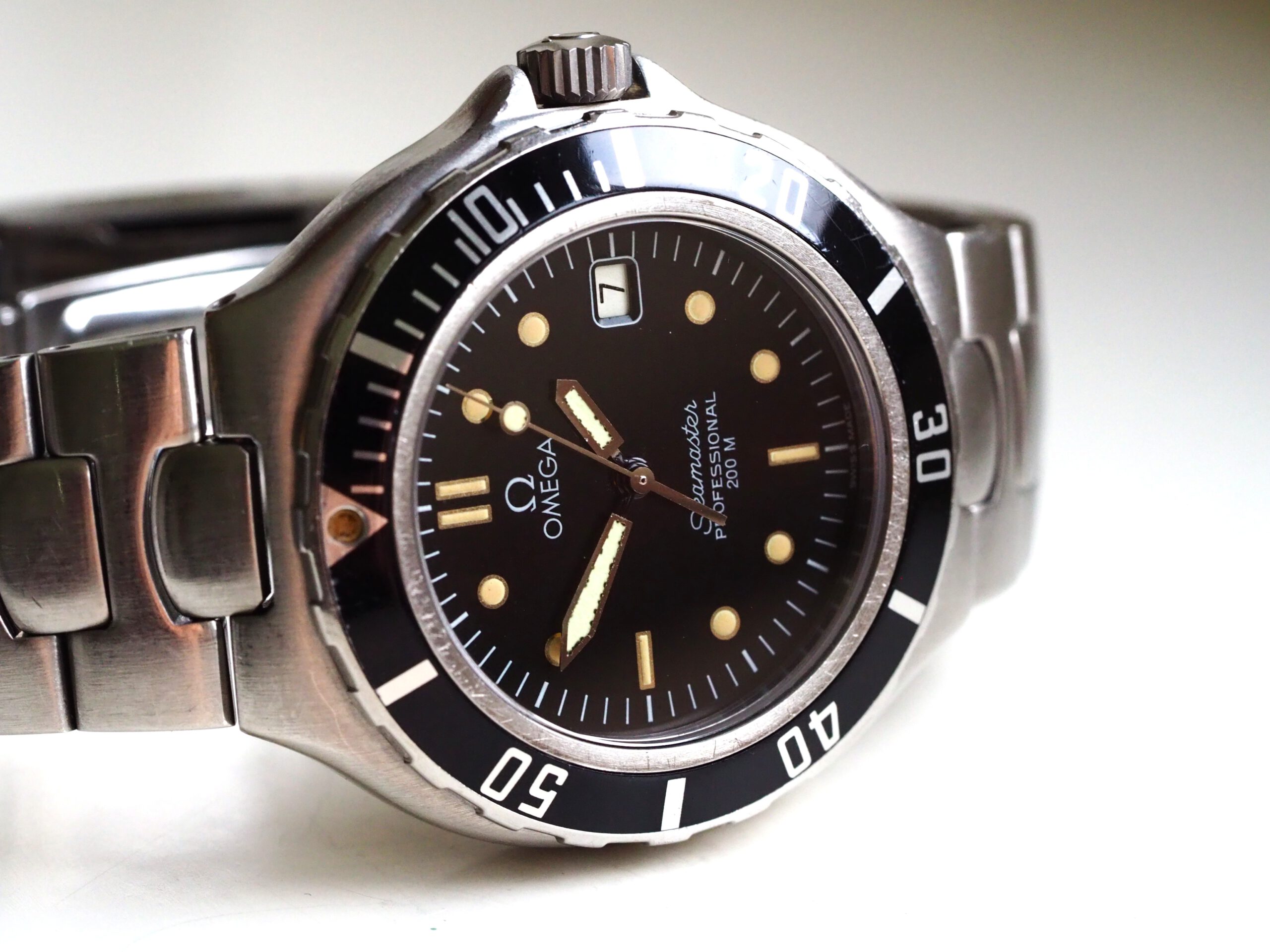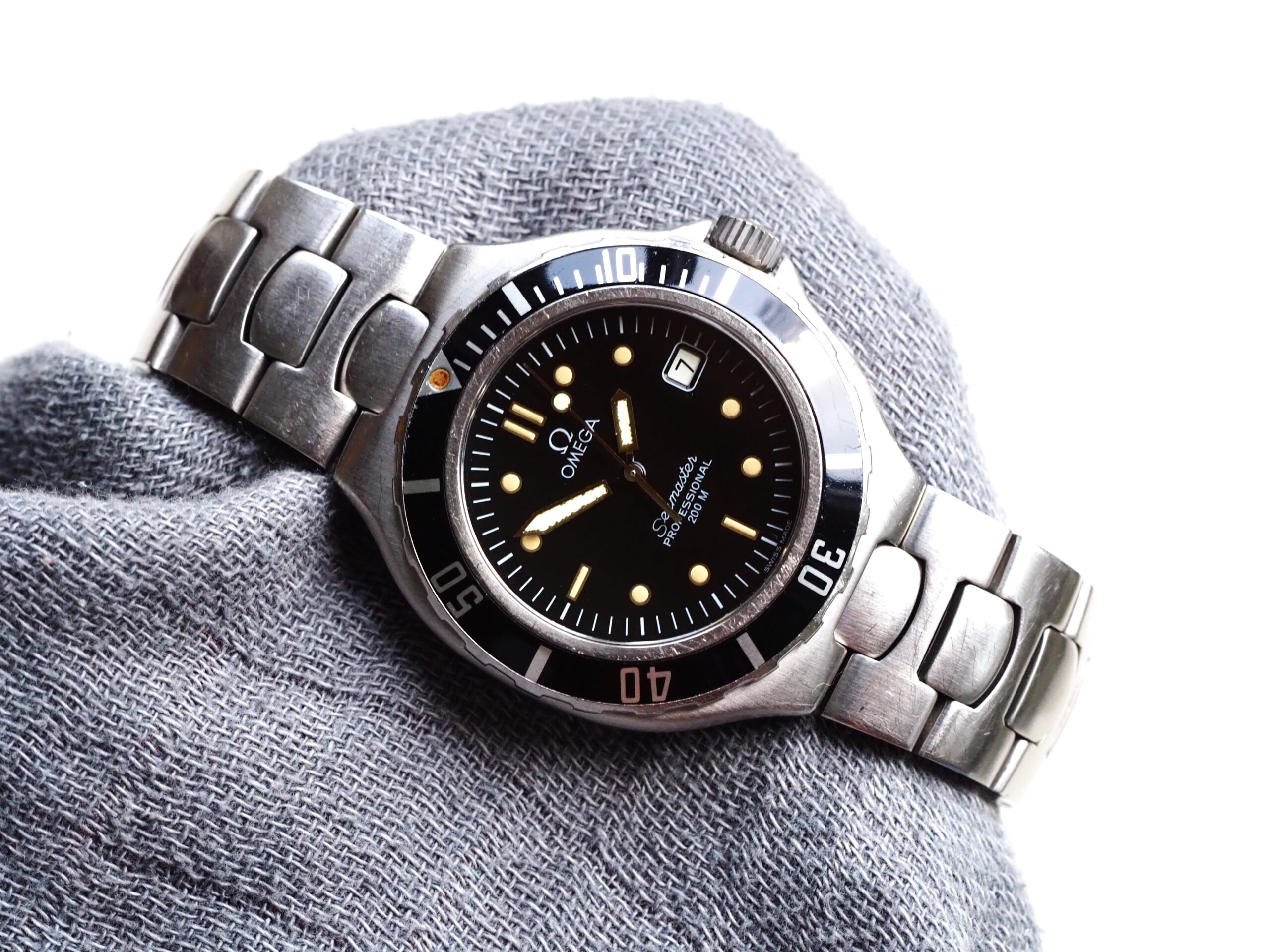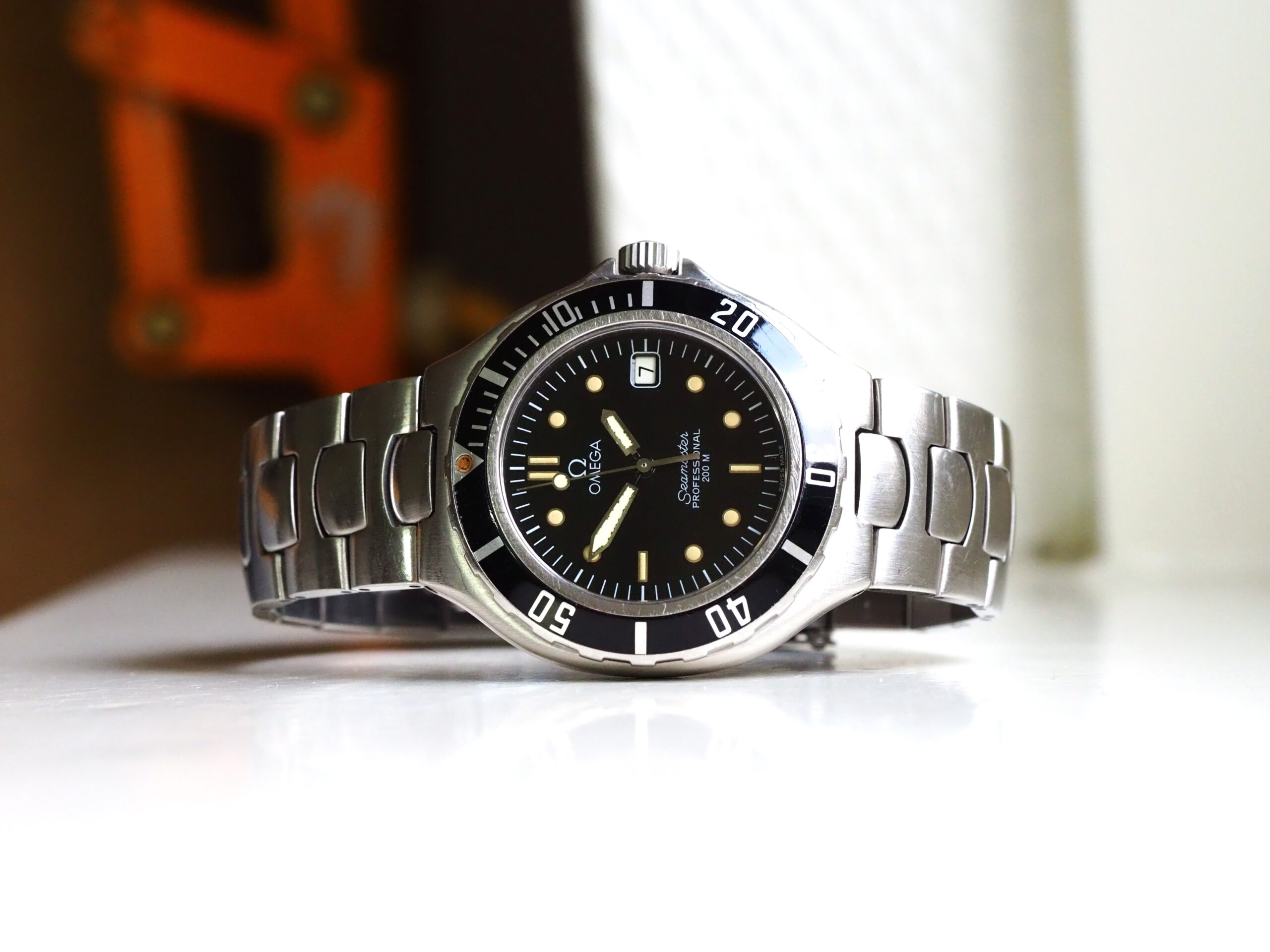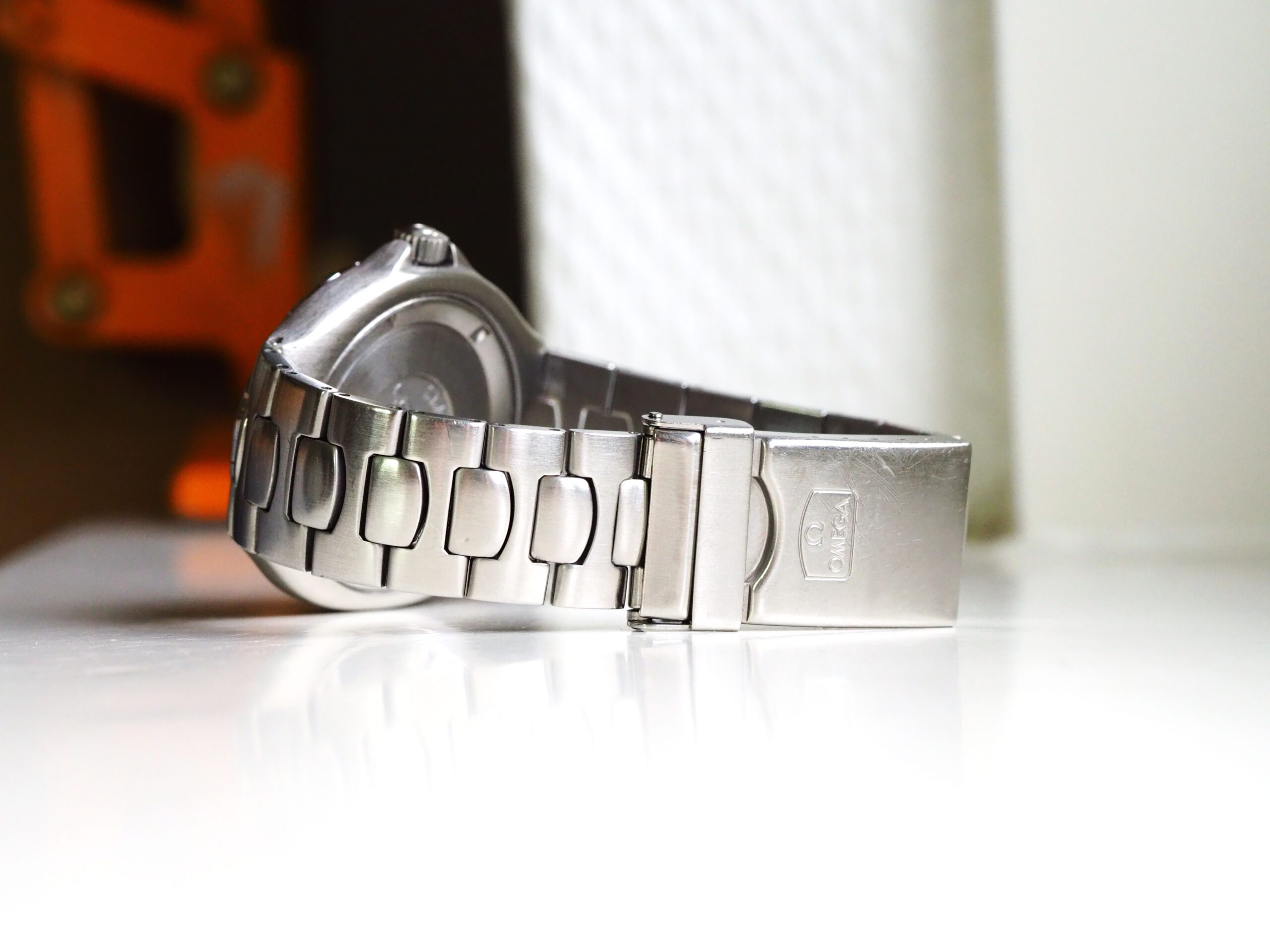 Referentie 396.1052 Omega Seamaster 200m quartz, serienummer 53235764 geproduceerd rond 1991. Prachtige semi-vintage Seamaster 200m quartz in goede originele staat. Ruim 30 jaar oud en nog steeds helemaal in orde, degelijk gebouwde horloges. Het prachtig verkleurde tritium lumen geeft het horloge een vintage uitstraling. In de stalen kast vinden we een Omega 1438 quartz uurwerk welke net volledig is geserviced (december 2025) en feilloos functioneert. Ik heb tijdens deze service ook alle rubberen pakkingen vervangen en het horloge getest op 10 bar / 100 meter waterbestendigheid. Het enige dat niet is vervangen is de glaspakking, dit is een specifiek onderdeel van Omega. De stalen band is geschikt voor een polsomtrek van ongeveer 17 cm, maar het horloge komt met een paar extra schakels. Geen doos/papieren. Kastdiameter 36mm zonder kroon.