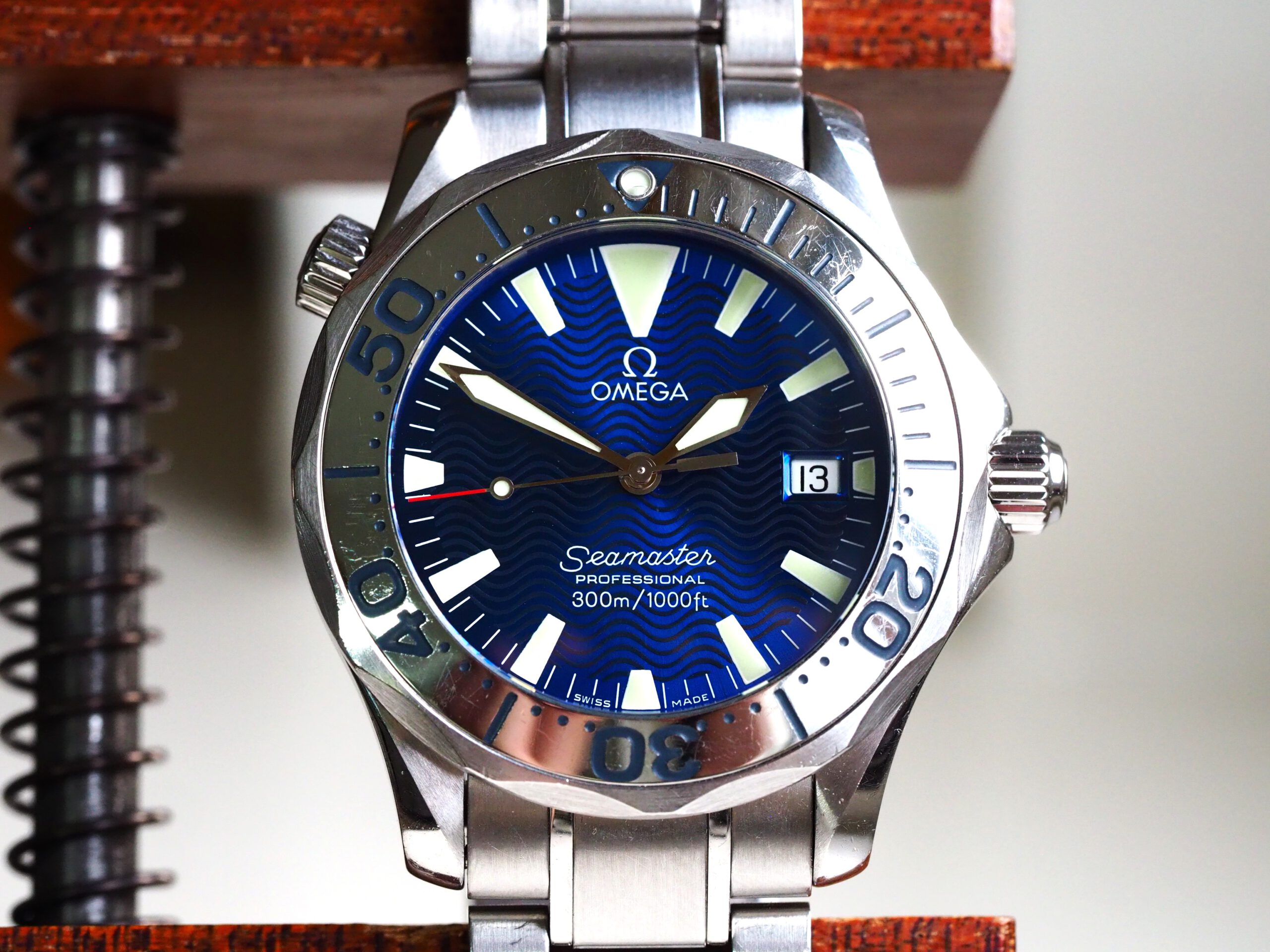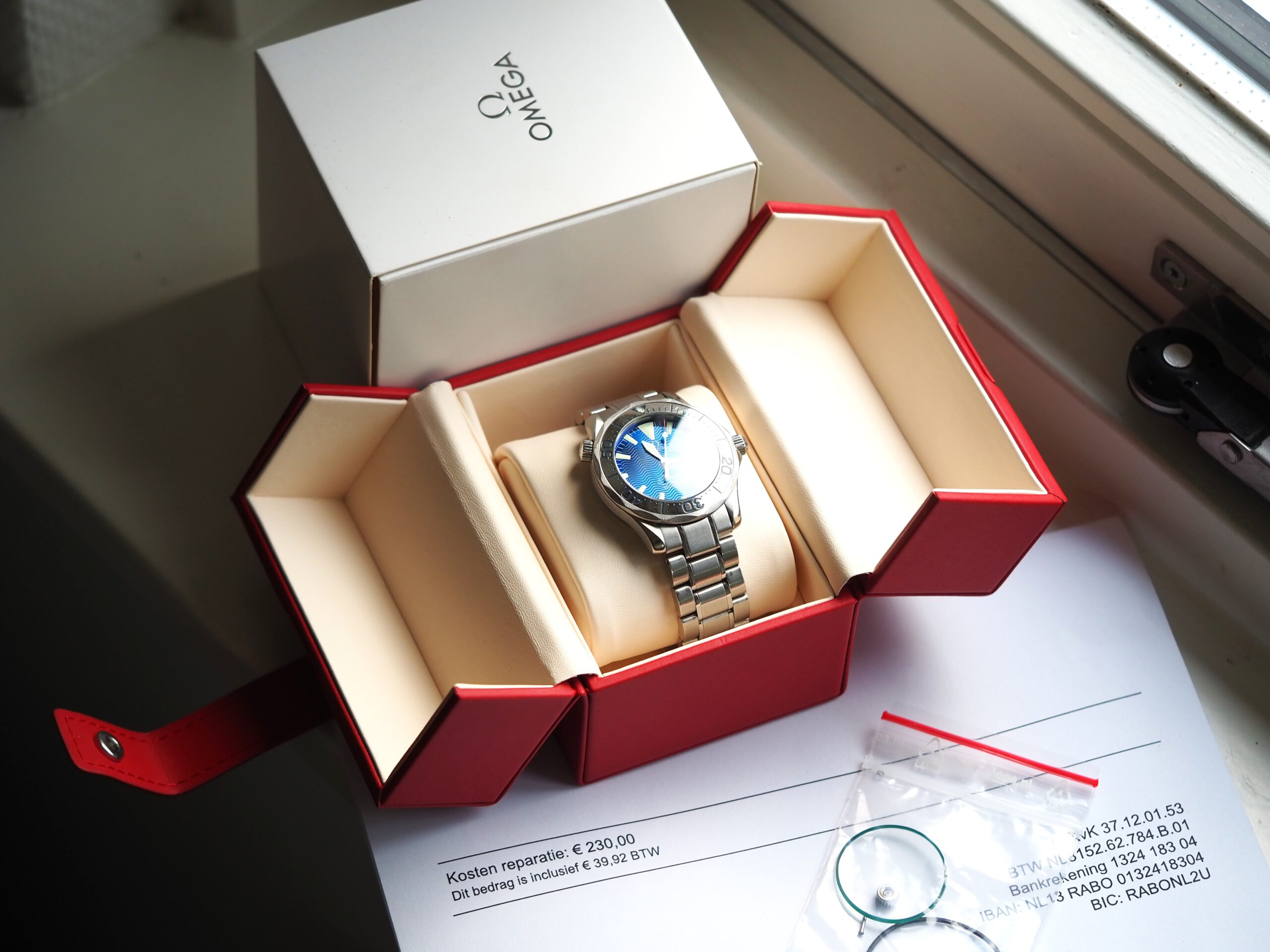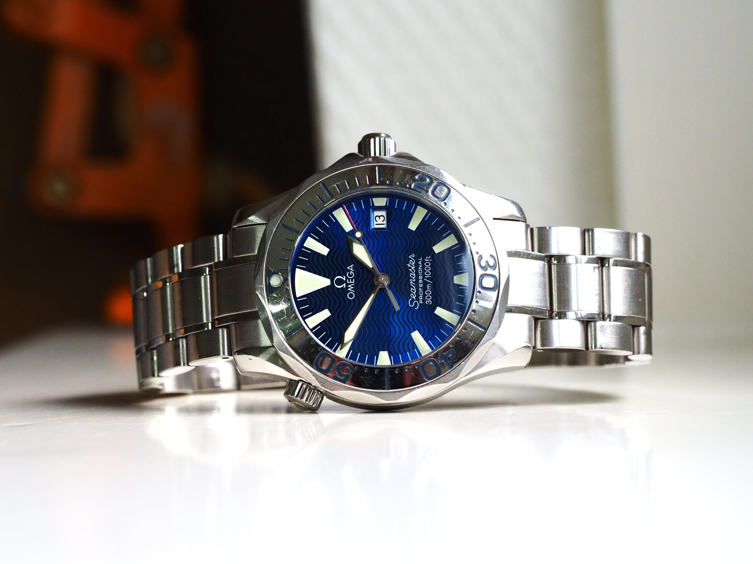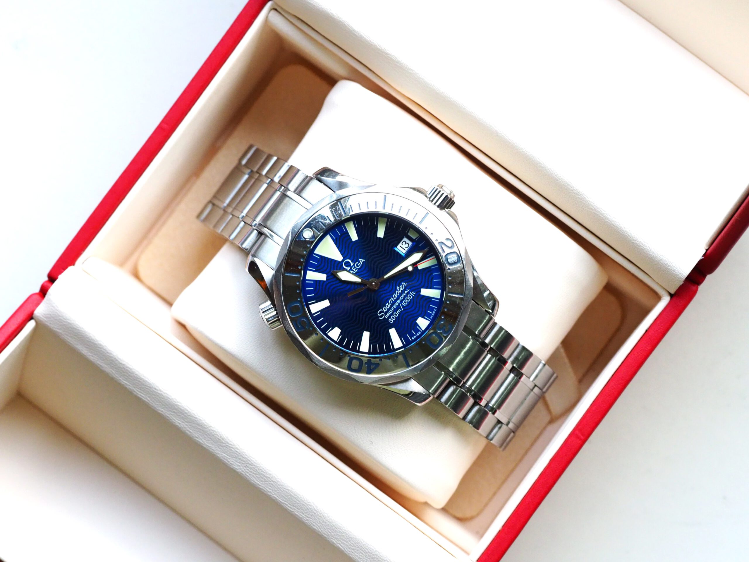 Referentie 2263.80.00 Omega Seamaster Professional 300m, serienummer 57816146 geproduceerd omstreeks 2000. Prachtige stalen Seamaster 300m quartz in goede gebruikte staat met recente batterij en waterdichtheid service door een Omega gecertificeerd service center. De prachtige blauwe wijzerplaat met golfjes patroon springt direct in het oog en maakt dit horloge tot een ware schoonheid. Het horloge verkeert in gebruikte staat met normale gebruikssporen, zeker gezien de leeftijd. Eerder dit jaar (juli 2025) is het horloge geserviced door een Omega gecertificeerd service center (Fixlogic, Hoorn). De batterij, pakkingen, kroon en heliumventiel zijn vervangen. U kunt er zeker van zijn dat de waterdichtheid voor langere tijd in orde is. De stalen band is eveneens in goede conditie en geschikt voor een polsomtrek van maximaal 18cm. Kastdiameter zonder kroon 36mm.