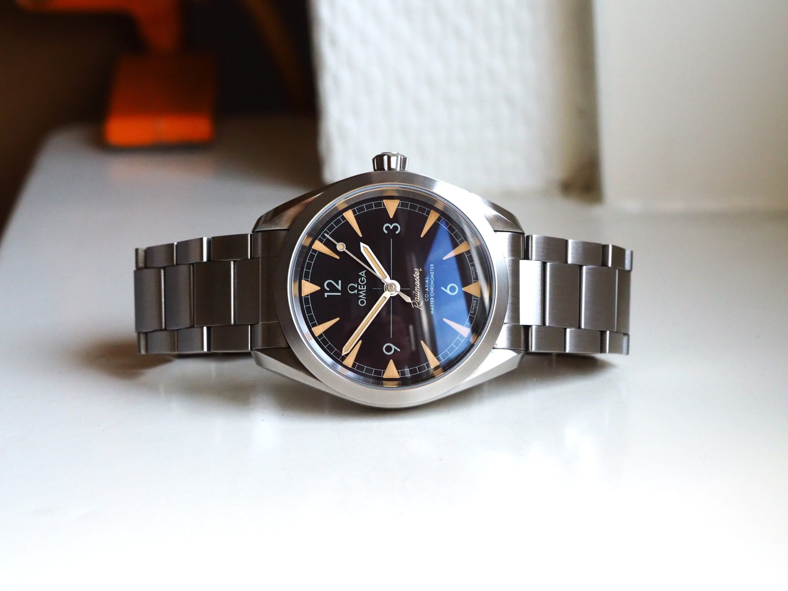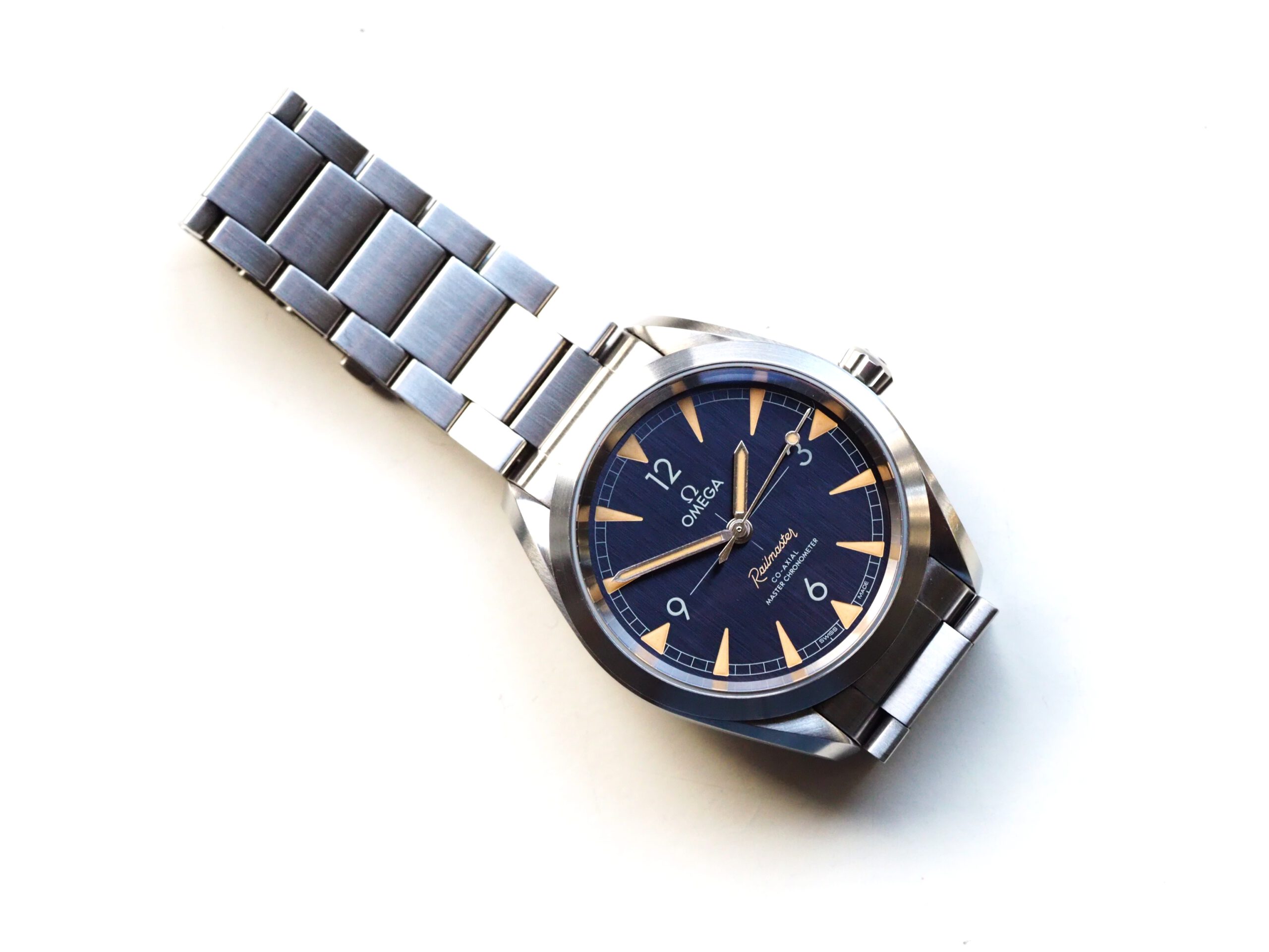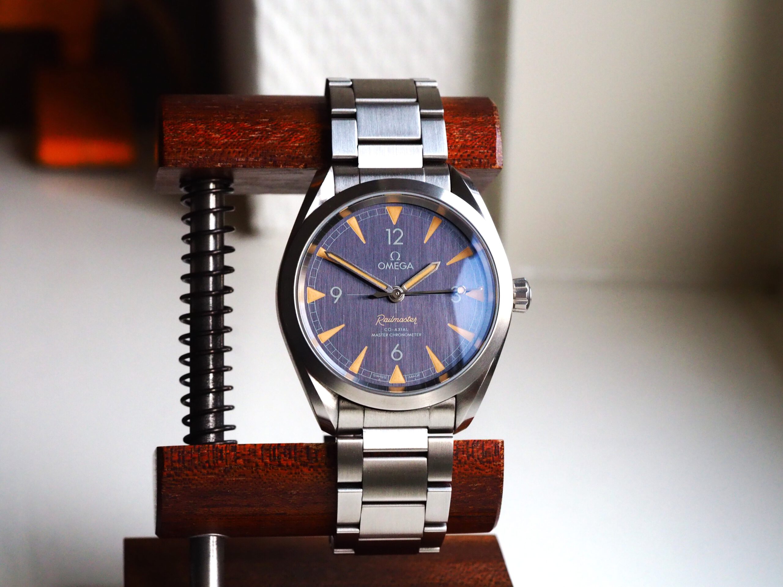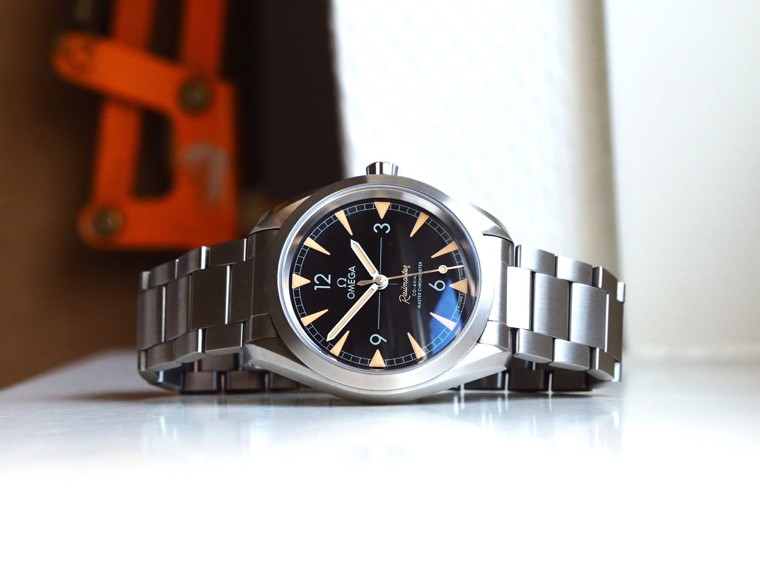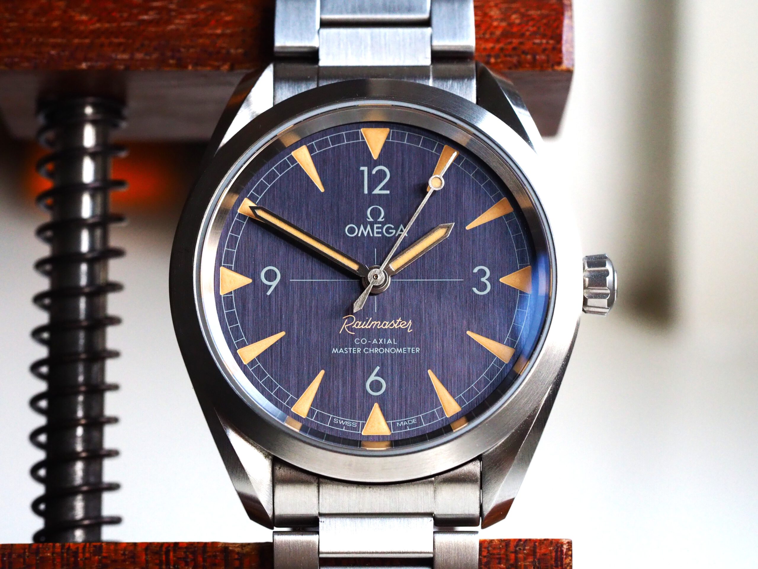 Prachtige full-set Omega Seamaster Railmaster met Co-Axial Master Chronometer uurwerk in zeer goede staat. Referentie 220.10.40.20.01.001, geproduceerd/verkocht omstreeks 2020. De wijzerplaat heeft een donkere antraciet kleur, maar afhankelijk van het licht en inval verandert de kleur naar lichtgrijs met een vleugje paars door de ar-coating op het glas. Ik heb geprobeerd dit zo goed mogelijk vast te leggen op de foto’s. Het horloge is gebruikt en vertoont enkele gebruikssporen, maar verkeert over het algemeen in zeer goede staat. In de kast bevindt zich een Omega 8806 uurwerk dat naar behoren functioneert en een goede gangreserve heeft. Het loopt iets buiten de chronometerspecificaties, ongeveer -5 seconden per dag. Kastdiameter 40mm zonder kroon.